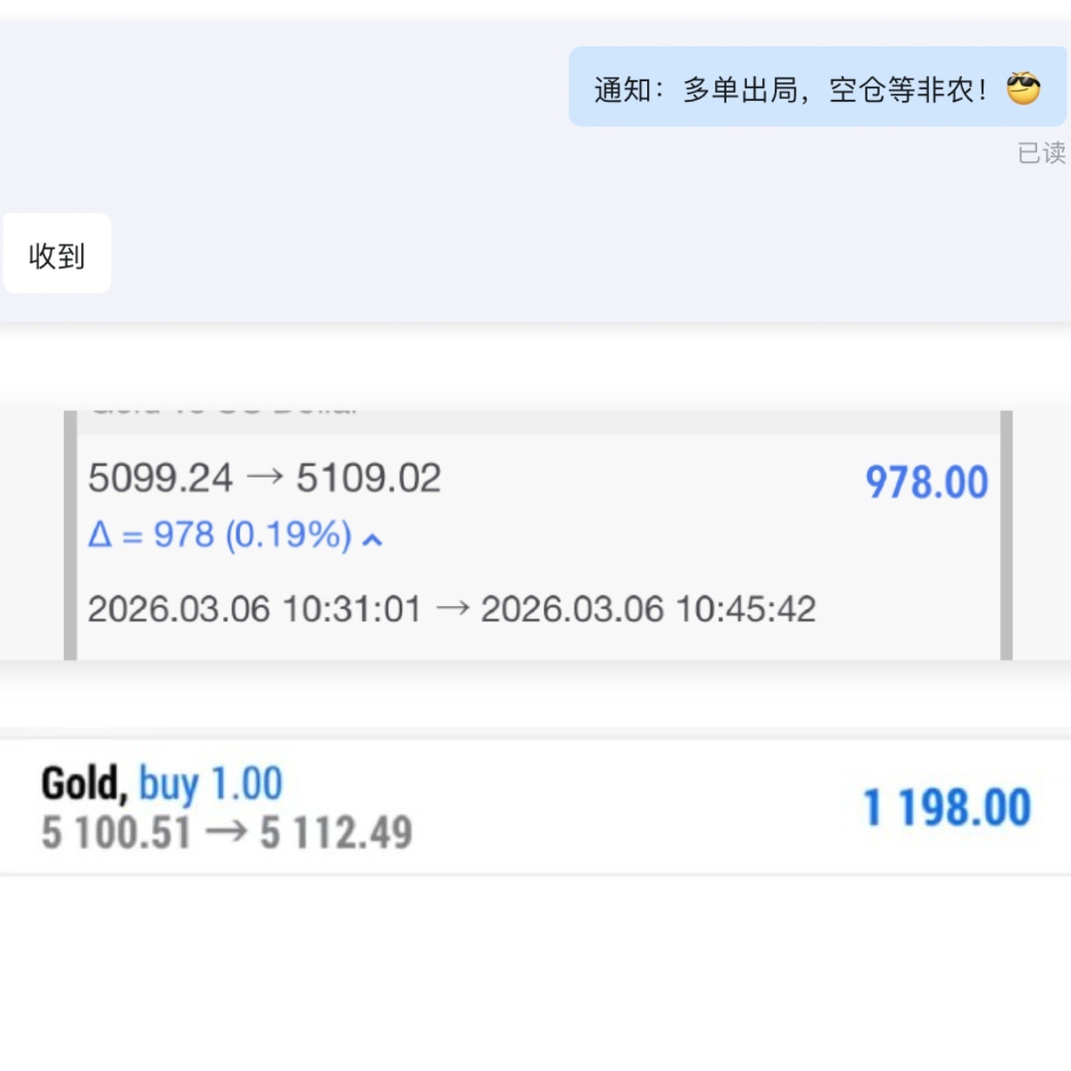 这单持单还是有必要说明一下,这单深哥是在5100入场的多单,入场后没一会就迎来了上涨,有朋友现在说深哥这单损了,还是那句话场外百点自行护利,行情都走完了你再次介入损单了深哥也不好说啥,真假白银的咱就不会问一嘴深哥出没出,还能进吗?
