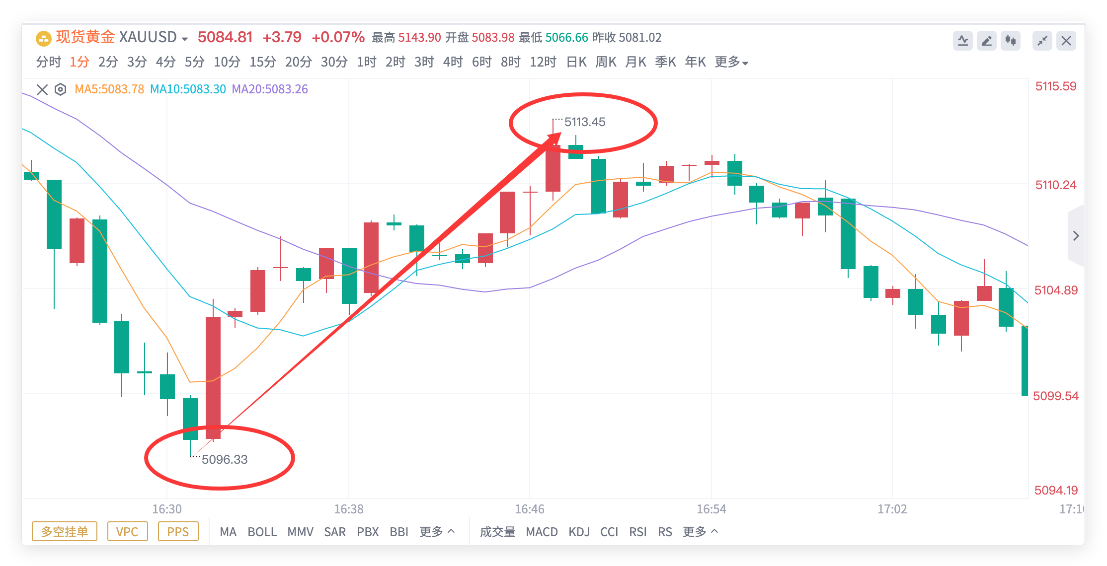 黄金5100多单,抵达5112出局,获120点!👊