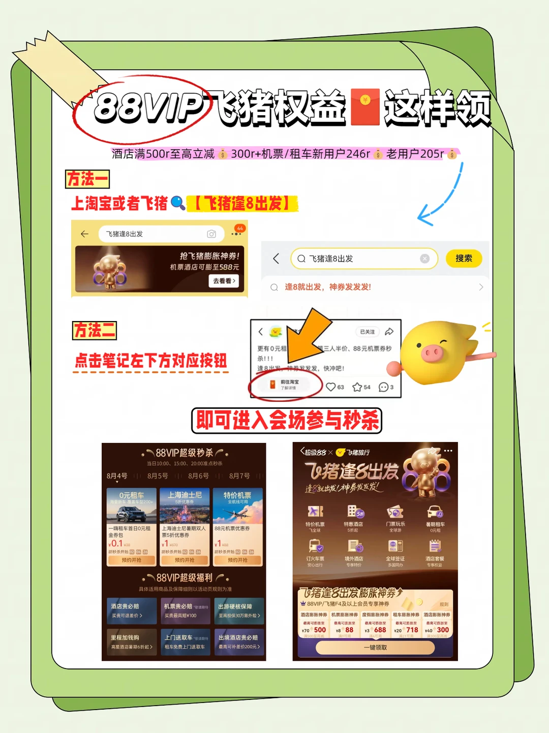 ✅88VIP或者飞猪f4以上会员可以上淘宝/飞猪🔍:【飞猪逢8出发】