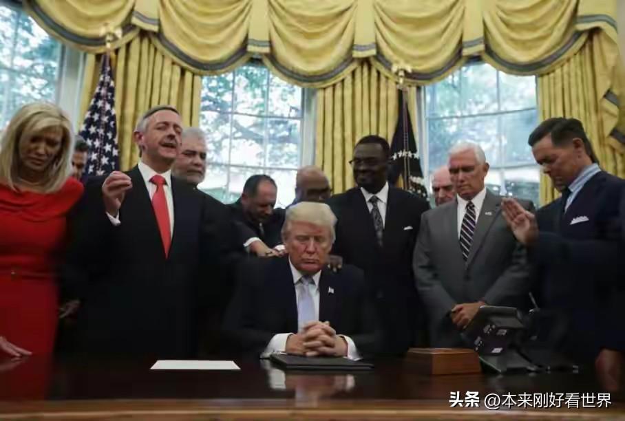 特朗普终于开始祈求上帝显灵保护了。近日,特朗普又在椭圆形办公室,接待来自各地的牧