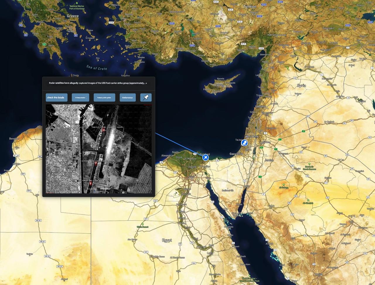 这是接替“林肯号”吗? 卫星图片显示:一队海军编队进入苏伊士运河,疑似“福特号”航母编队。 而五角大楼周五也公布了照片,显示福特号航母和贝恩布里奇号驱逐舰(DDG-96)于周四通过苏伊士运河。 此前消息:伊朗袭击了位于阿曼湾的美军“林肯号”航母,该航母及其护航驱逐舰已驶离被袭地点。