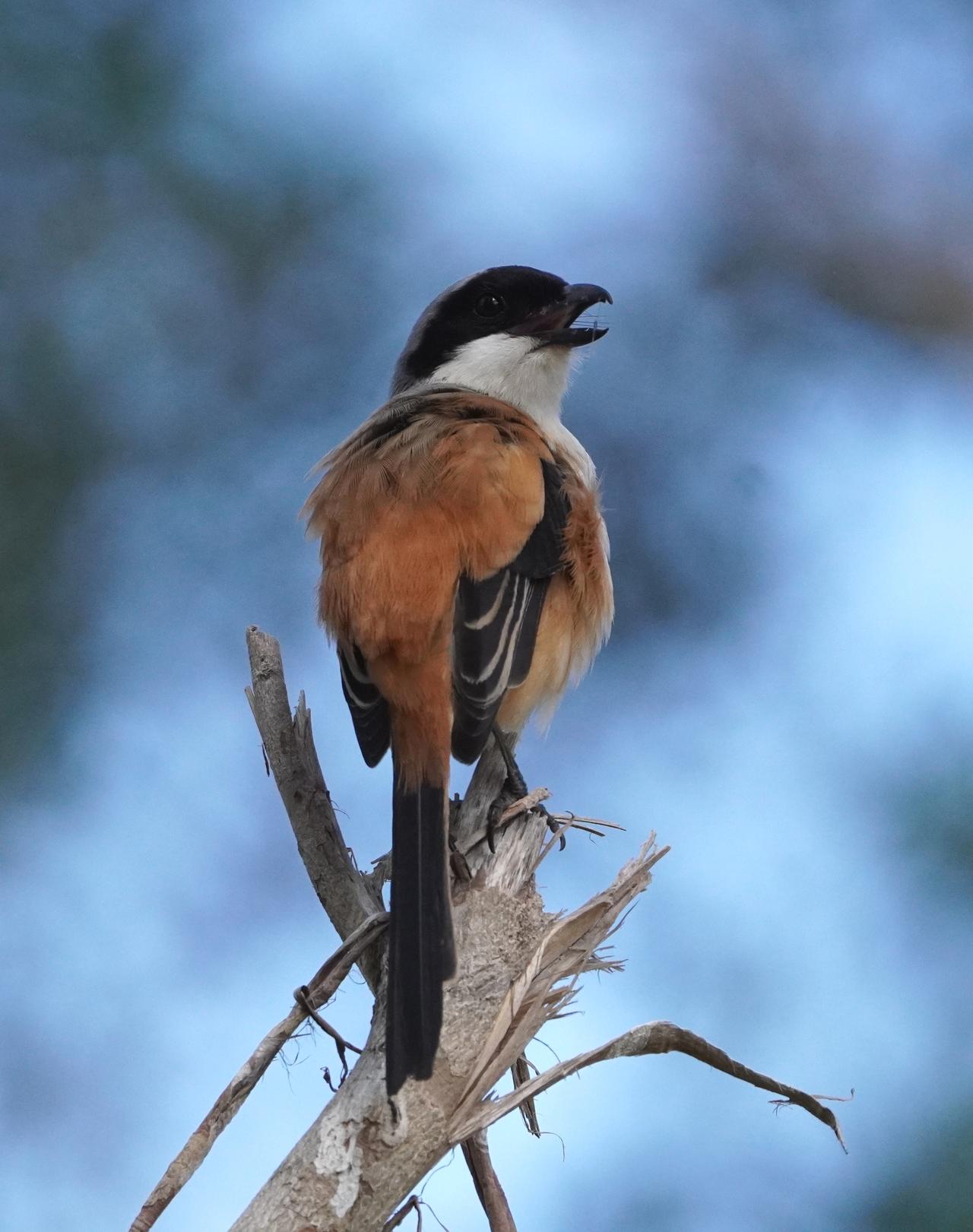 海南三亚屠夫鸟伯劳 摄影师:王晓东 配诗:詹四平 美以开战乱纷纷, 中东哀鸿遍呻吟。 丛林法则屠夫鸟, 雀中猛禽笑争春。 外表华丽性不温, 喙粗嘴硬爪锐深。 候时生性猛好斗, 捕食鸟鼠撕碎身。 人以类聚鸟群分, 日出过罢是黄昏。 恶禽伯劳胡不拉, 常闻其类攻击人。