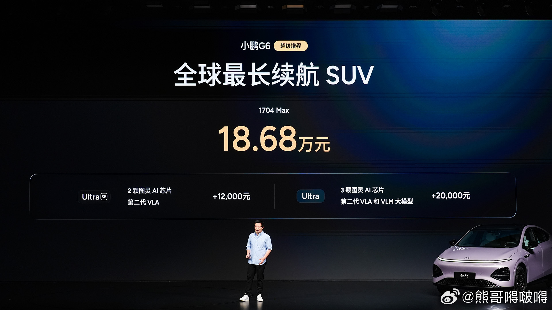 2026年3月6日,小鹏汽车正式推出小鹏G6超级增程,以“六项全能 一步到位”为核心,重新定义20万级增程SUV新标准。新车仅推出一款1704 Max版,官方指导价18.68万元,并提供两个智能升级包供用户选择。