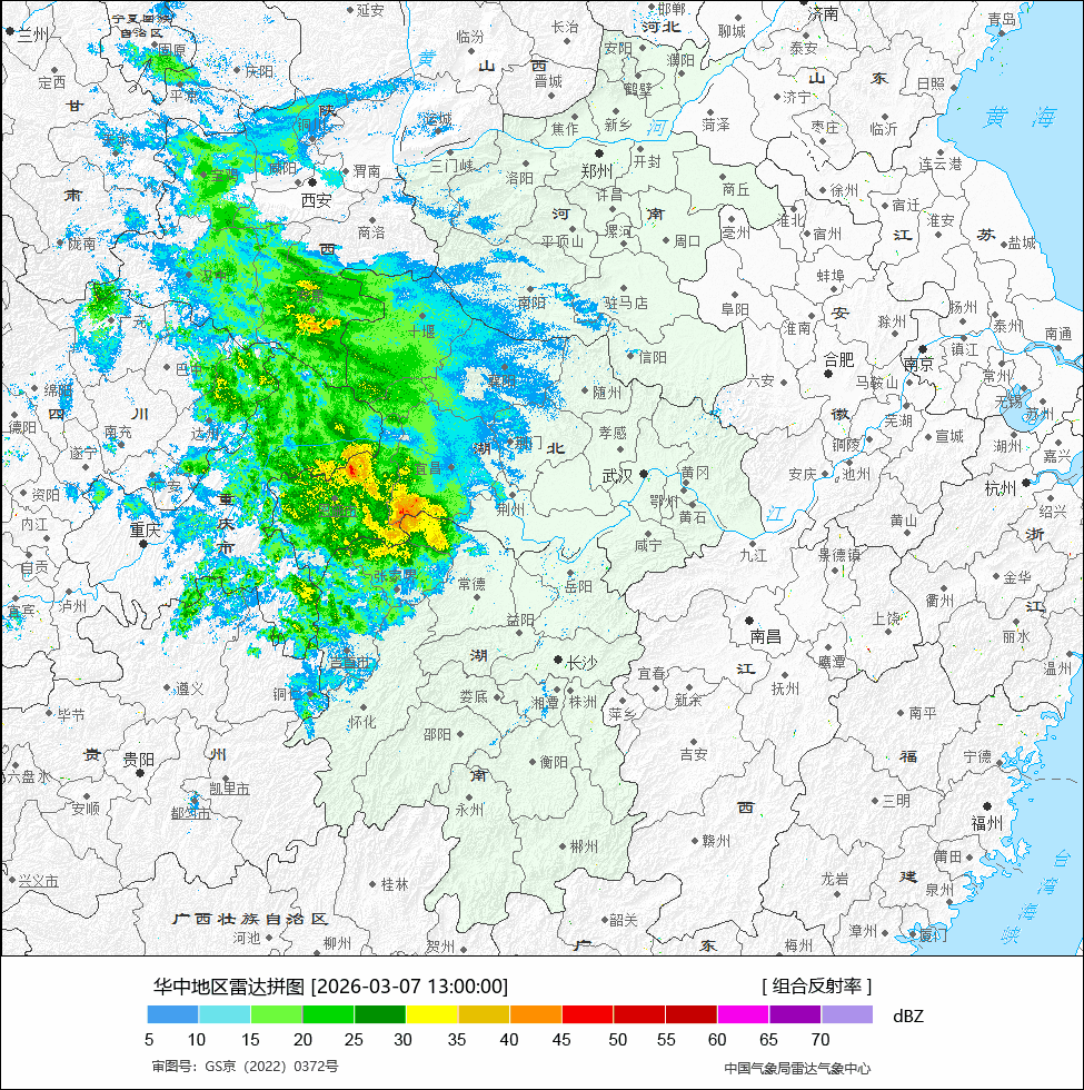 【降水】今天08-14时,降水主要出现在四川东部、重庆、贵州北部、湖北西部。从云图上也可以看到成片的降水云系。雷达上的降水向东推进。今天下午到明天中午,降水东段扩展到江西,降水南段扩展到广西。