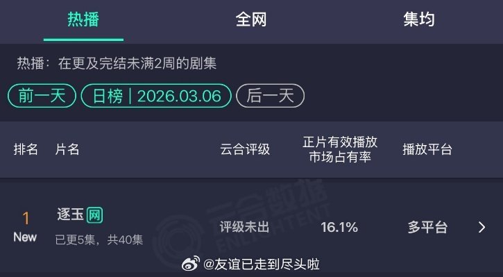 逐玉首日云合 逐玉 屠城 女主人设就是在乱世下的一个普通杀猪匠啊,所以按照她的处境才会说出这些话吧,不知道逐玉破了多少个记录,到底谁那么怕他俩红,逐玉这么爆吓到谁了,真是能鸡蛋里挑骨头。张凌赫田曦薇逐玉首日云合16.1%