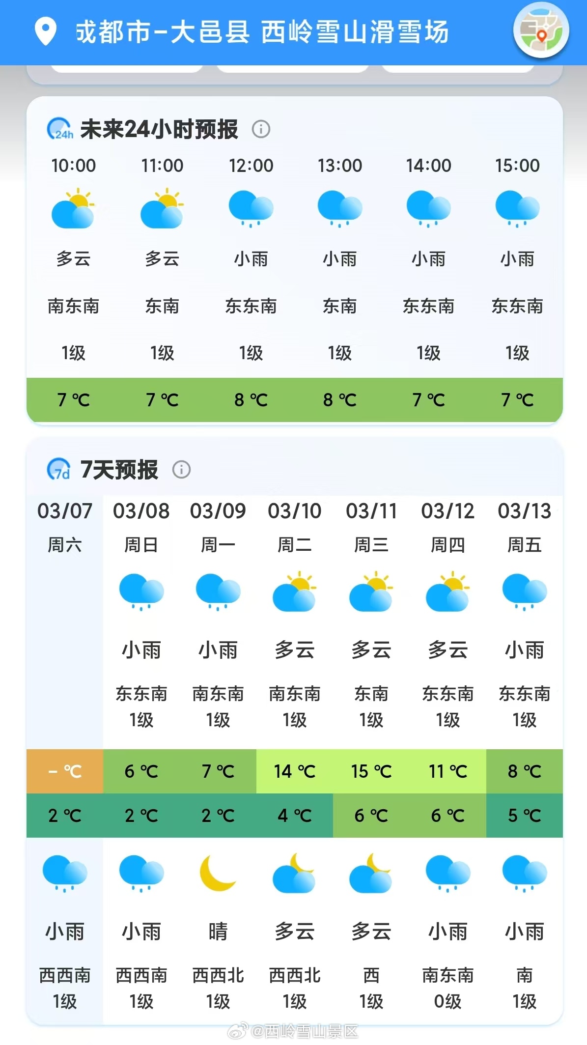 西岭雪山3月8日(周日)气象预报#西岭雪山#