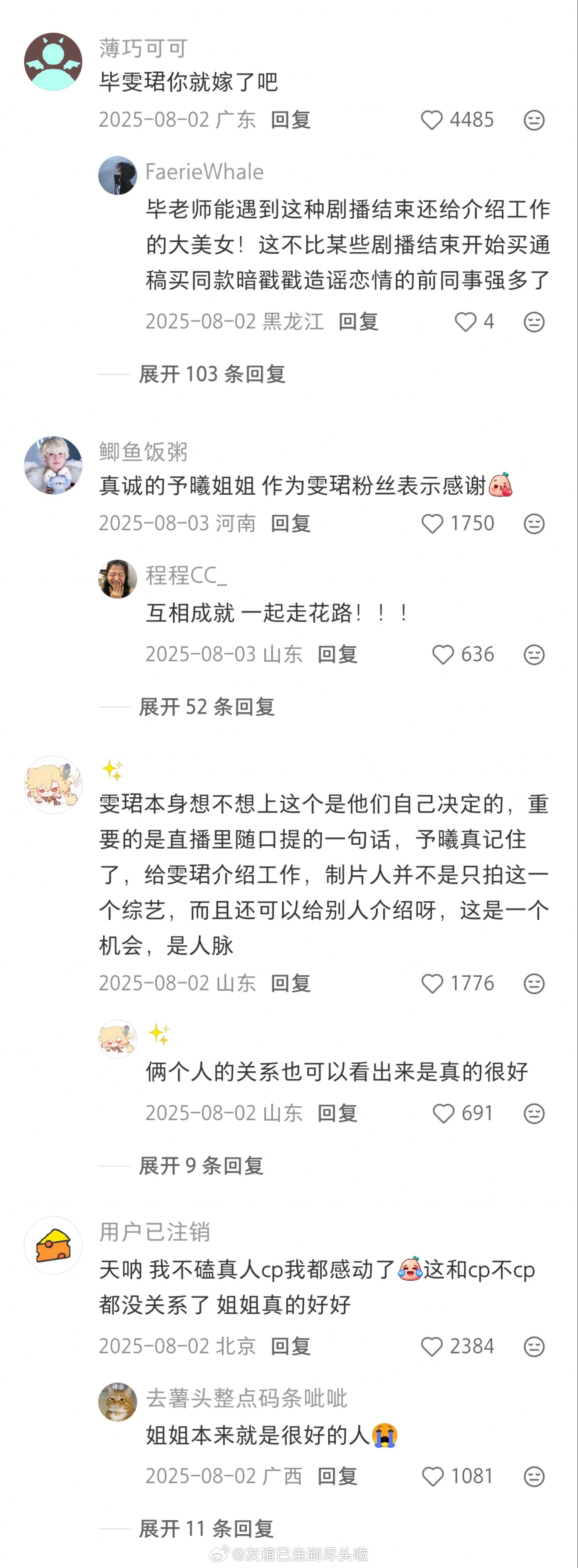 对比起来,张予曦还是太体面了,上芒果综艺还不忘给制片人推荐毕雯珺,《深情眼》播完还给介绍工作,各种热心张罗。如果毕雯珺不想接合体综艺,不想吃cp红利,可以拒绝的;真的没必要为了媚唯粉把自己说得这么委屈,这么迫不得已。。。毕雯珺 张予曦