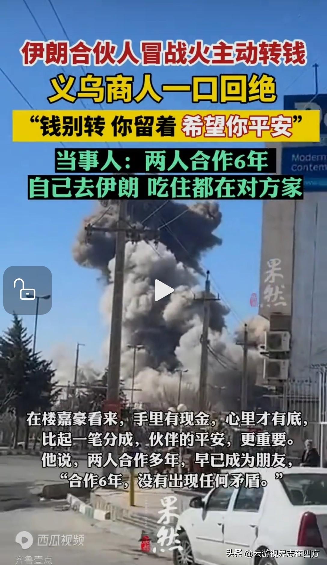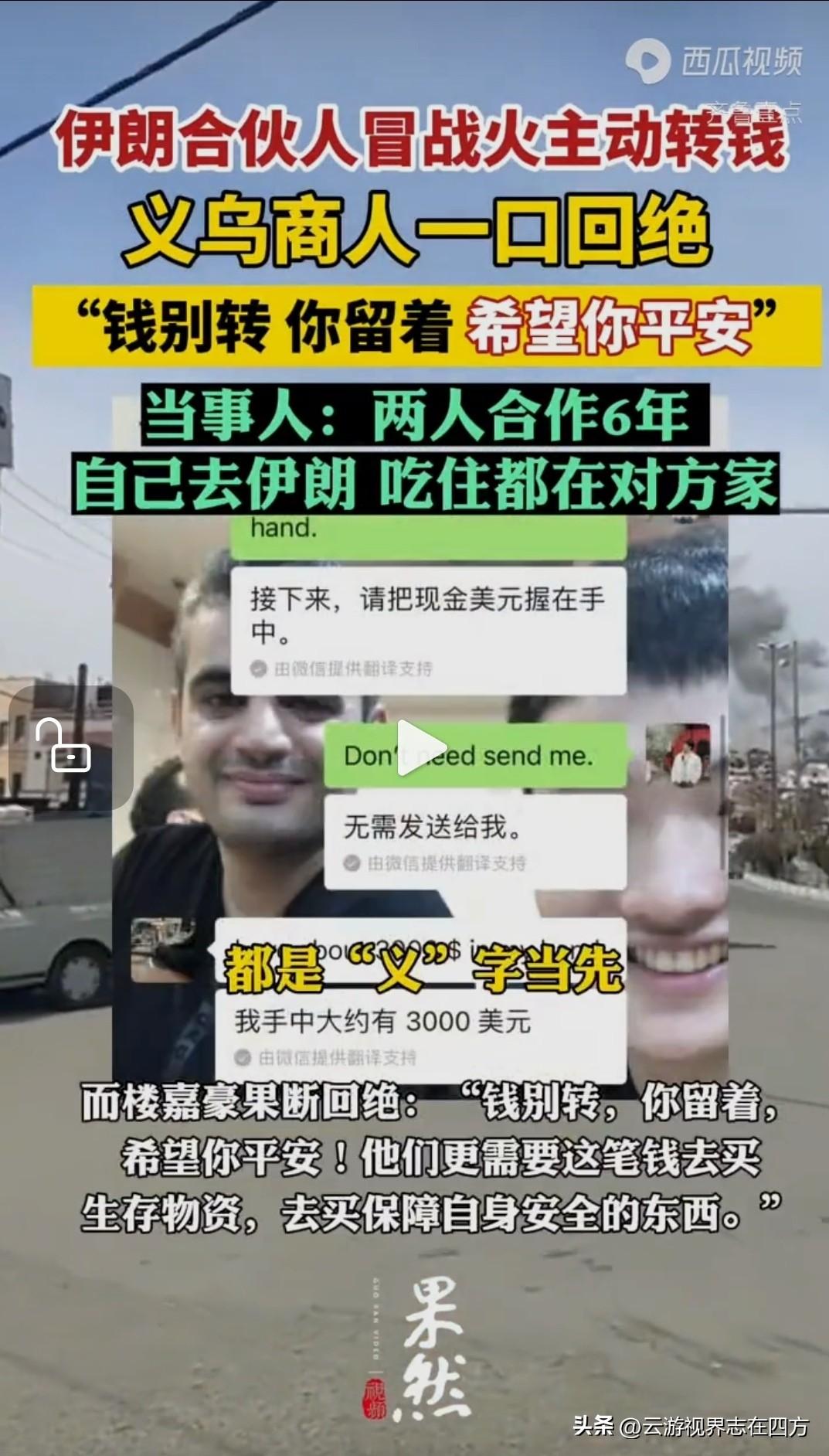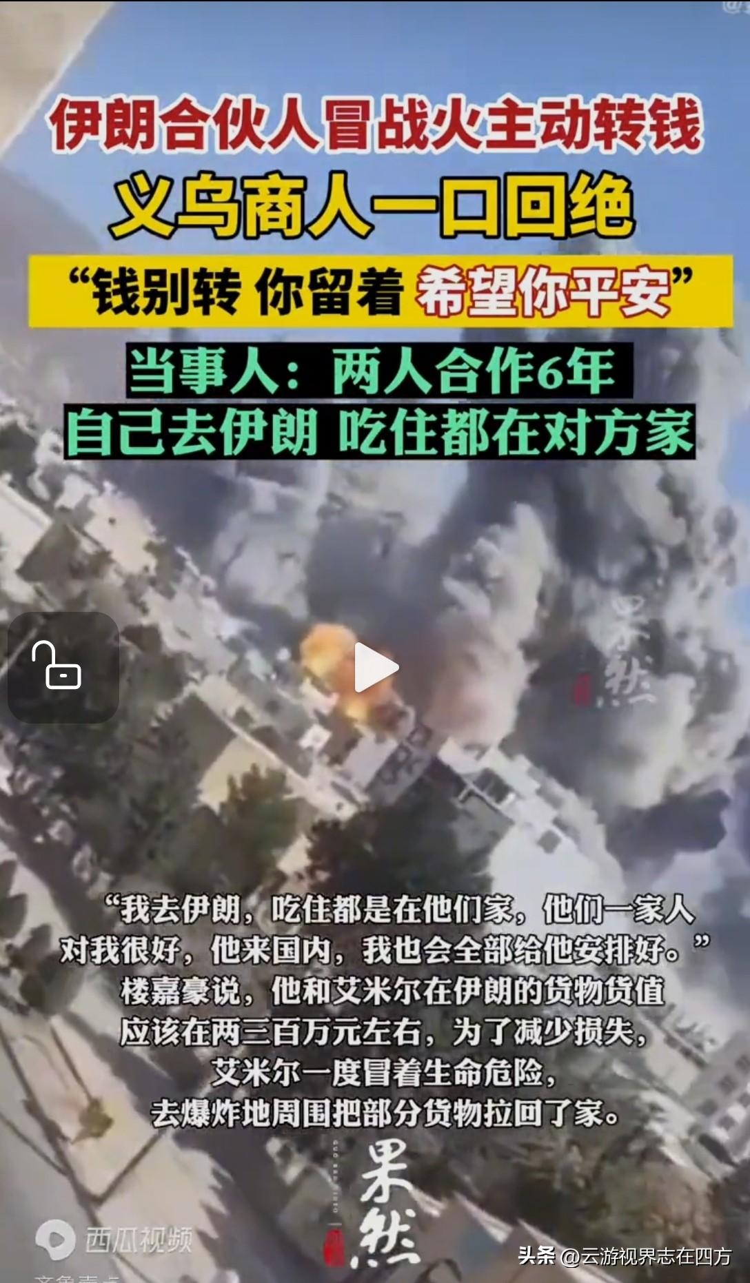 战火见真心! 伊朗合伙人要转账, 义乌商人一句话破防 战火纷飞,方见人心可贵