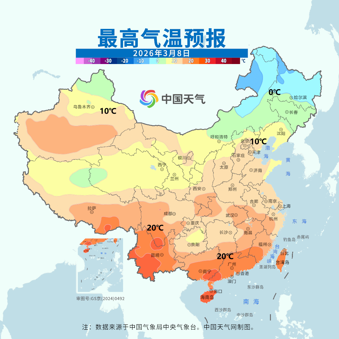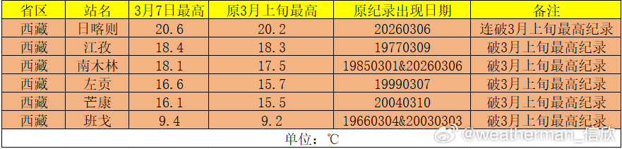 【气温】今天西藏有6个站点打破3月上旬最高气温纪录,其中,日喀则连续2天破纪录,今天把纪录提升到了20.6℃。未来高空暖脊东移,11日前,我国大部地区的气温趋势是向上,但8-10日其实还有冷空气东移南下。11日以后,有明显冷空气+阴雨雪导致降温,因此未来气温的起伏波动会加大。