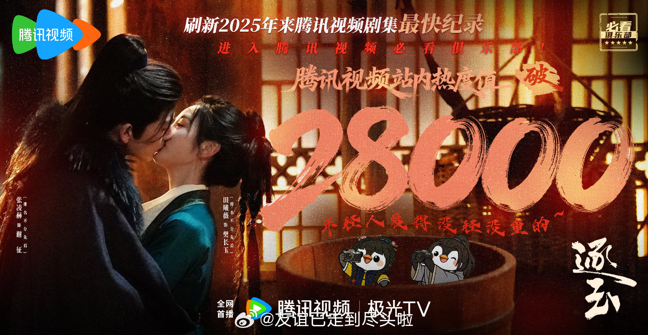 逐玉现在的热度:腾讯破28000,爱奇艺破9000,已经超过双平台去年的剧王了这