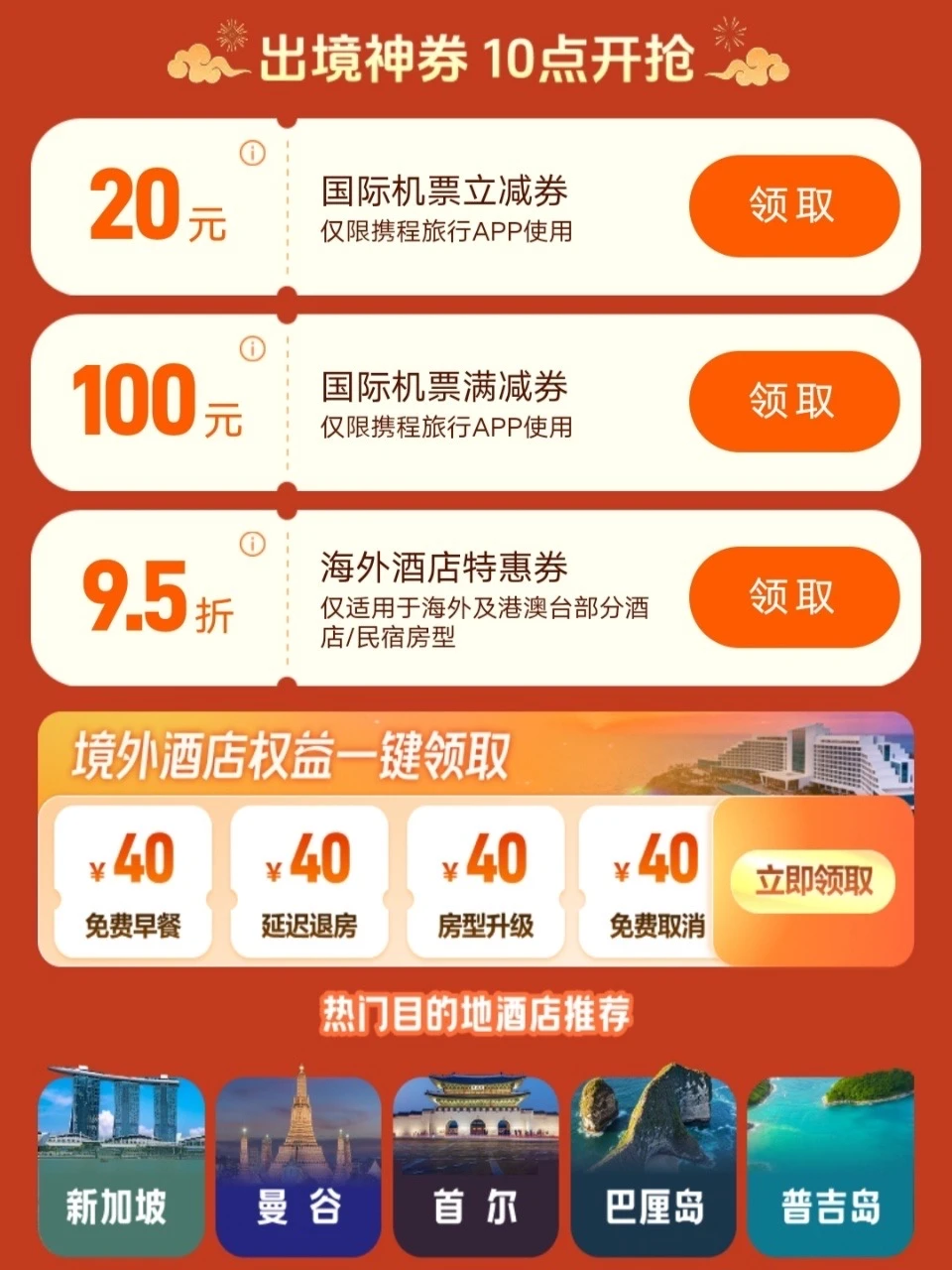 券包含携程机票满减和酒店折扣等,实用这么拉满了!每天十点开抢,实测领了就可以用,想出国旅行的宝子赶紧🐴住!