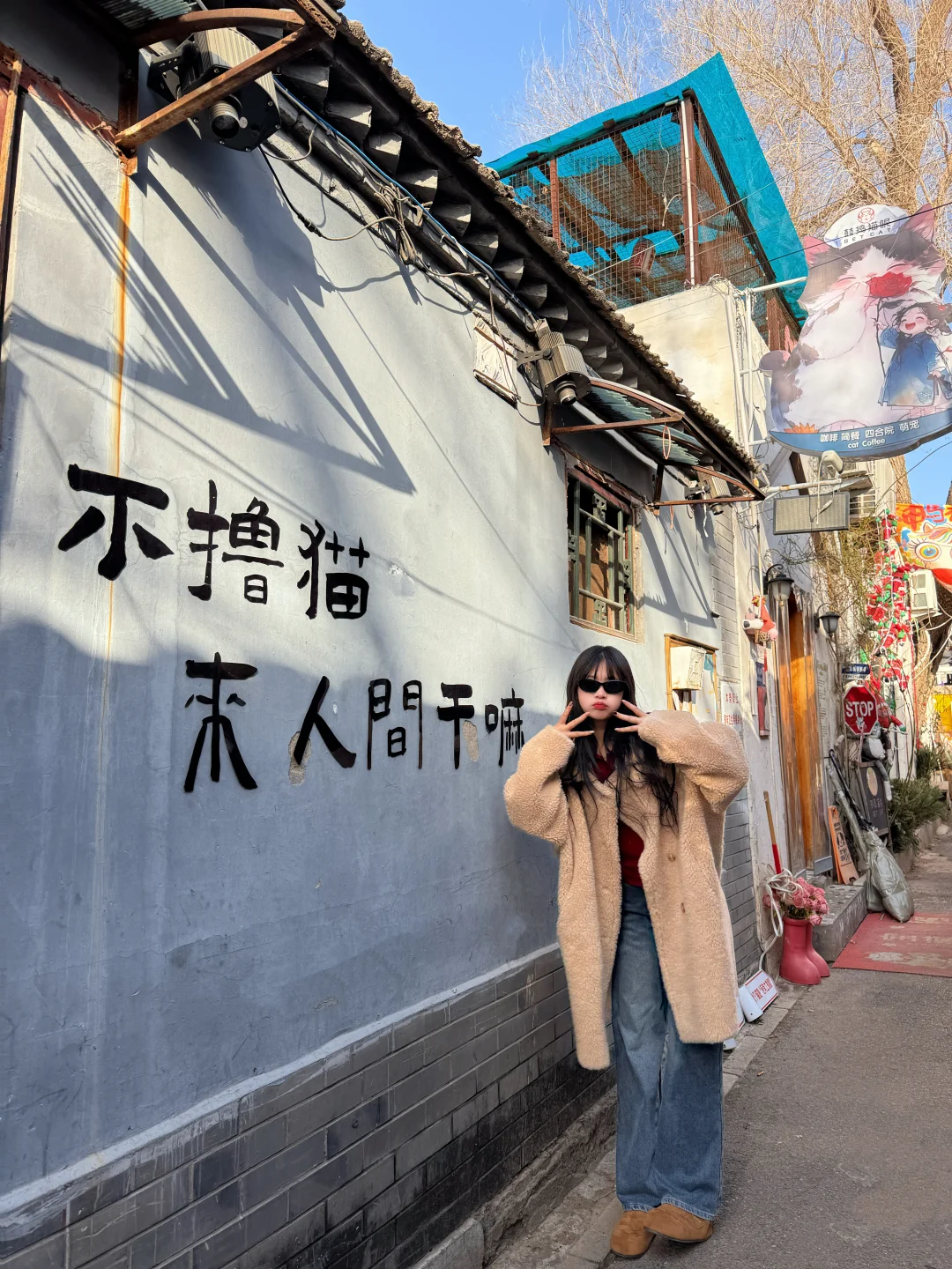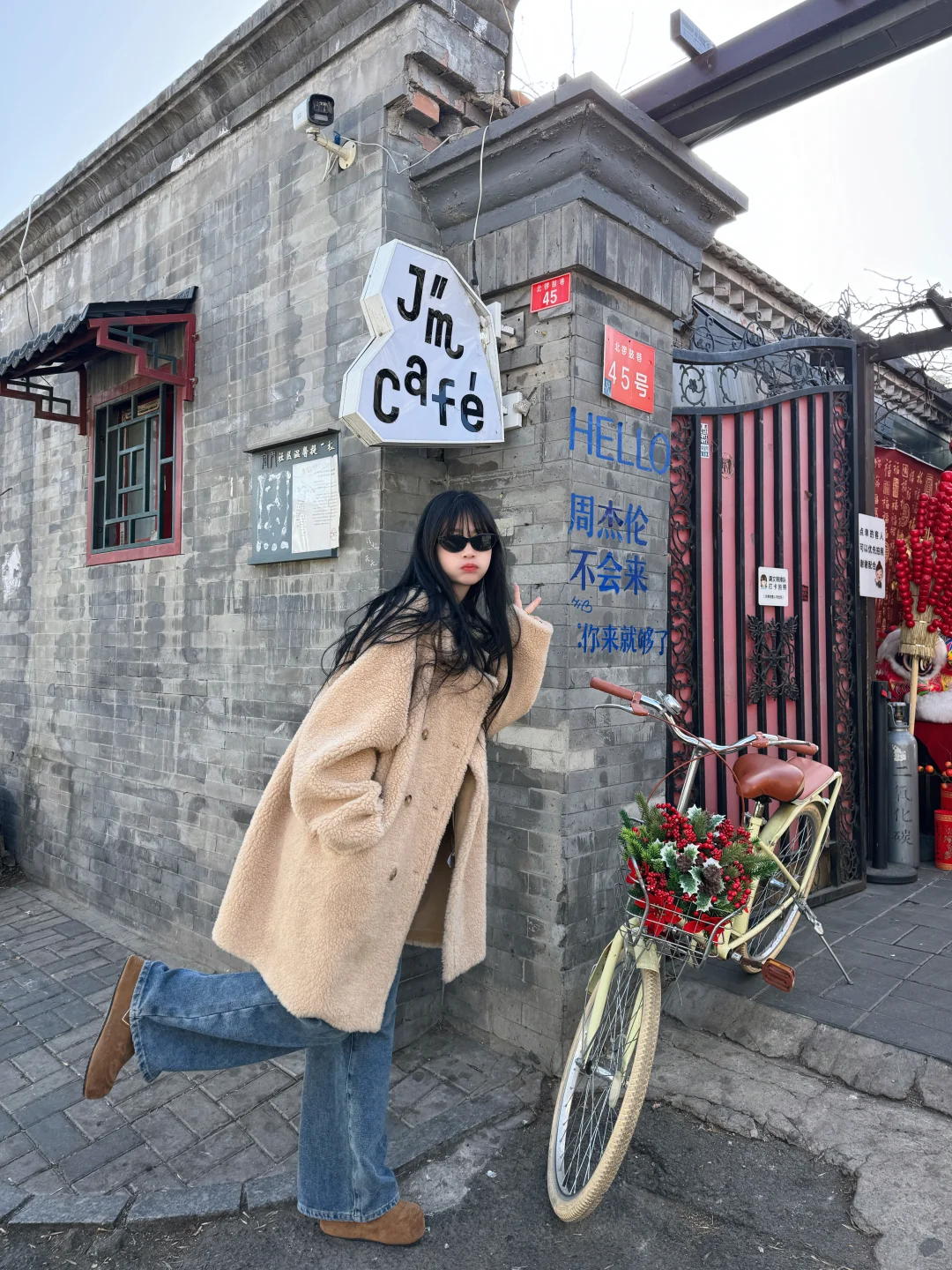 第一次来北京citywalk🚶 怎能错过南锣鼓巷和北锣鼓巷‼️ 是属于北京胡同的专属浪漫💕 快码住这条路线秒拍18个宝藏机位📷 - 📍【打卡路线】 ✅北锣鼓巷: 1️⃣JM Cafe(p2) 📷周杰伦墙面和复古自行车🚲 ⇩ 2️⃣V7 COFFEE(p3) 📷喜庆又复古的窗口 ⇩ 3️⃣如果(北锣鼓巷67号)(p4) 📷“断臂”马里奥 ⇩ 4️⃣彝席之地(p5) 📷我在北京倍儿想你路牌 ⇩ 5️⃣醒山咖啡(p6) 📷复古青砖墙下的小店 ⇩ 6️⃣pinp(p7) 📷红色马上许愿海报和对联 ⇩ 7️⃣胡同儿卓洱(p9) 📷撞南墙 ⇩ 8️⃣黄瓦财神庙(p10) 📷红墙庙宇 新年發财 ⇩ ✅南锣鼓巷: 9️⃣大树前老市集(p11) 📷港风北京大字墙 ⇩ 🔟鼓捣猫呢(p12.13) 📷胡同里的猫猫元素 对面玻璃的北京大字 ⇩ 1️⃣1️⃣蓝白商店(p14) 📷蓝白色北京大字 ⇩ 1️⃣2️⃣家雀儿(p15) 📷2026 别说你见过的山 只有早高峰 ⇩ 1️⃣3️⃣京太宝文创(p16) 📷红色北京大字 ⇩ 1️⃣4️⃣八月桂花香(p8) 📷天坛造型下的北京大字