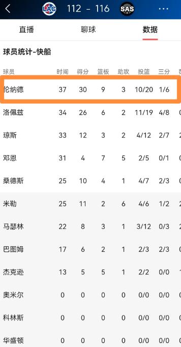 快船巨星伦纳德真是倾其所有了!虽然今天快船在客场以112:116不敌马刺,但是伦纳德在攻防两端都拼尽全力,做到了倾其所有、问心无愧。 快船客场挑战马刺的这场比赛,最终没能拿下胜利,输掉了比赛,但这场球,没人能责怪伦纳德,因为他真的拼到了最后,攻防两端都拿出了自己全部的力气,做到了问心无愧。 这场比赛是伦纳德重返圣安东尼奥面对旧主,一登场就遭到了现场马刺球迷的狂嘘,但他没有被影响,一门心思放在比赛上。 比赛一开始,他就主动为队友创造得分机会,帮队友送出助攻,让快船拿到第一次运动战进球。 马刺一开始三分手感很好,连续命中三分,伦纳德就主动突破造犯规,靠罚球帮球队稳住局势,不让分差被拉开。 进攻端,伦纳德全程都很积极,不管马刺怎么重点盯防他,甚至后来用多人包夹限制他,他都没有退缩。 第二节的时候,趁着文班亚马休息的间隙,他持球强攻内线,带领快船打出一波进攻高潮,还完成了一次快攻暴扣,带动了全队的士气。 他还特意给状态好的洛佩斯创造得分机会,让快船的进攻更加顺畅,慢慢拉开了分差。 防守端,伦纳德同样拼尽全力,全程专注度拉满,紧紧盯着自己防守的球员,不给对方轻易得分的机会。 他多次完成抢断,打乱马刺的进攻节奏,尤其是防守福克斯的时候,把对方限制得很难发挥。 哪怕到了下半场,马刺开始疯狂反扑,进攻势头很猛,他也没有松懈,依旧认真防守每一个回合,努力维持球队的领先优势。 下半场的时候,快船一度领先很多,但马刺突然发力,打出一波又一波的进攻高潮,分差一点点被缩小,甚至被反超。 这个时候,伦纳德站了出来,连续造犯规靠罚球得分,还命中跳投,自己连得几分帮快船稳住局势,不让球队彻底崩盘。 末节最后时刻,比赛异常焦灼,伦纳德依旧在拼命,突破抛投帮球队止损,还在关键时刻造犯规罚球,一度帮快船反超比分。 最后关头,伦纳德被马刺死死包夹,很难拿到球权,即便拿到球,也会被多名球员防守,最终错失了制胜的投篮机会。 比赛结束后,伦纳德低着头走向球员通道,看得出来他很失落,但他真的已经做到了极致。 赛后接受采访时,伦纳德也客观评价了马刺,说没人想到他们能这么早就有这么好的表现,拥有优秀的球员和教练团队,知道怎么取胜。 整场比赛,伦纳德打了很长时间,全程没有敷衍,每一个回合都拼尽全力,进攻端主动得分、带动队友,防守端认真防守、积极抢断,哪怕球队最后输了,他也没有任何遗憾,完完全全做到了倾其所有、问心无愧。 以上都是个人观点,对此您有什么不同的看法,可以在评论区留言讨论!!!