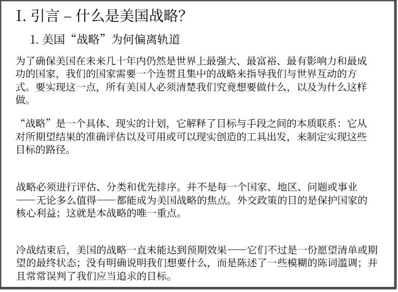 报告引言首先说:“美国“战略”为何偏离轨道”