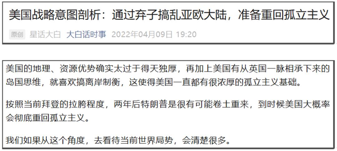 我在2022年4月9日的这篇文章里,就明确分析过“两年后特朗普是很有可能卷土重来,到时候美国大概率会彻底重回孤立主义。”