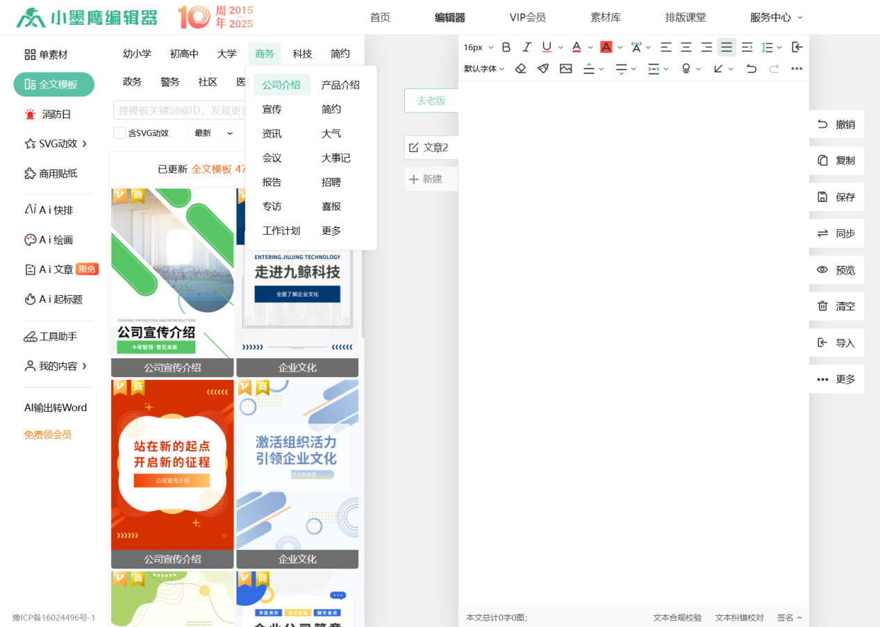 作为一枚新媒体老司机,我深知企业公众号排版有多让人头秃。既要保持品牌调性统一,又要兼顾内容美观度,还得考虑团队协作效率。今天给大家安利一款我最近发现的宝藏工具——小墨鹰编辑器,它完美解决了企业公众号运营的三大痛点:效率低、风格不统一、团队协作难。