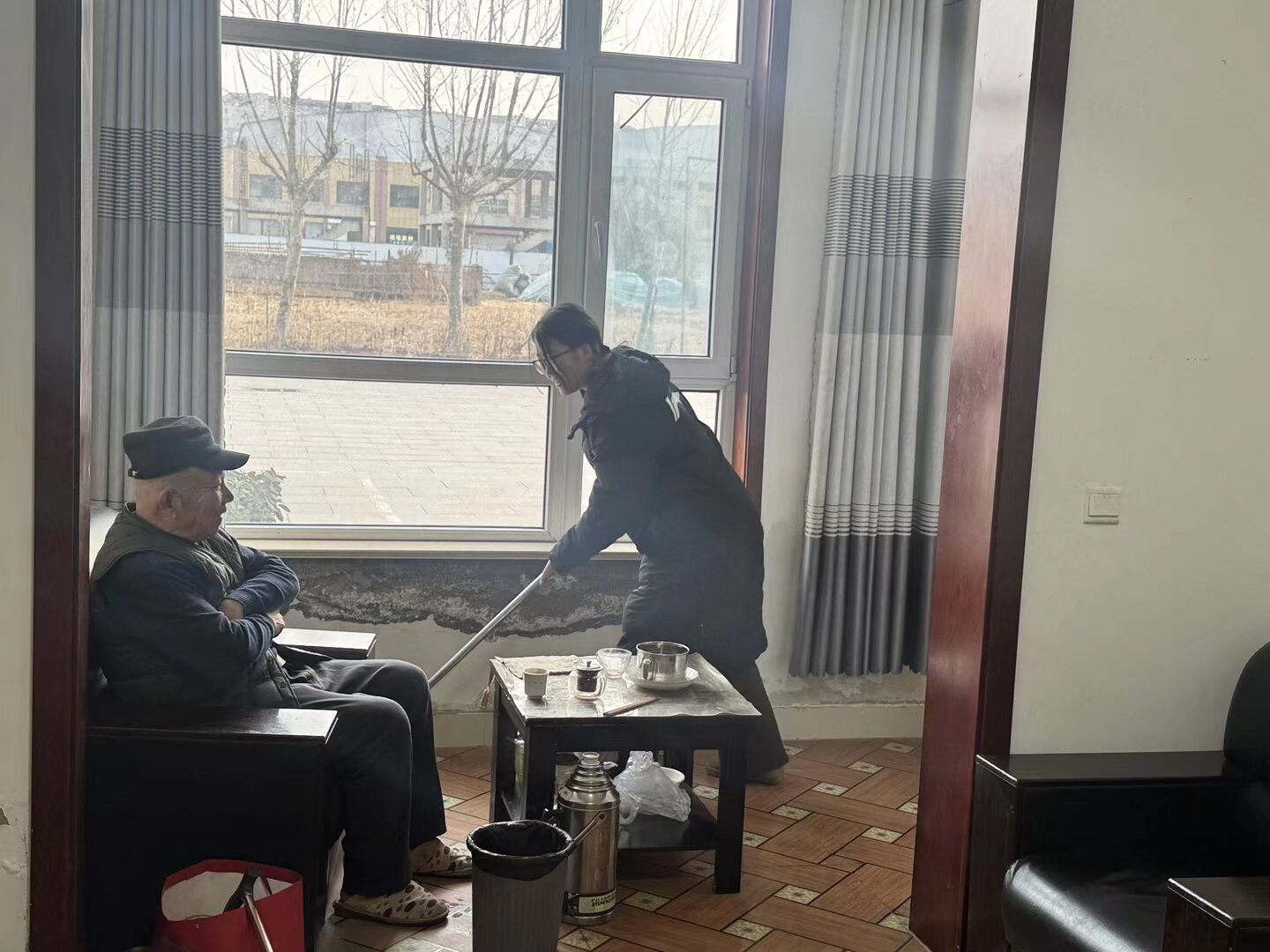 在活动中,实践队的队员们化身“贴心小棉袄”,以多种形式为老人们提供帮助与陪伴。有的队员拿起扫帚、拖把,为老人打扫房间、整理庭院,将室内外环境收拾得干净整洁,让老人们在清爽舒适的环境中生活;有的队员围坐在老人身边,耐心倾听他们讲述过往的故事,陪他们翻看旧照片、读报纸杂志,在轻松的交流中缓解老人的孤独感;还有的队员细致地为老人讲解用药知识,手把手指导他们正确使用药品,同时普及健康养生、防诈骗等实用信息,守护老人的身心健康。