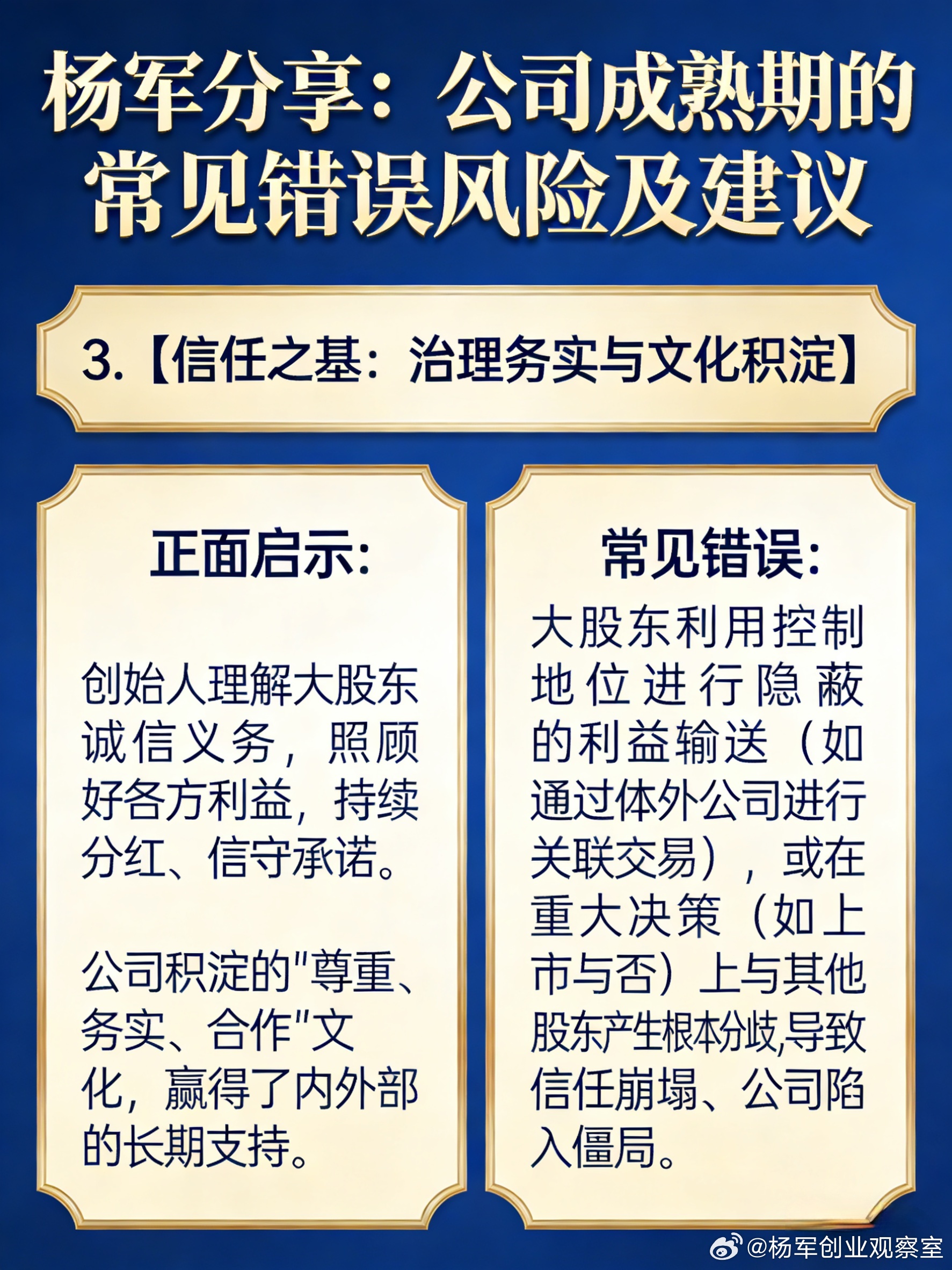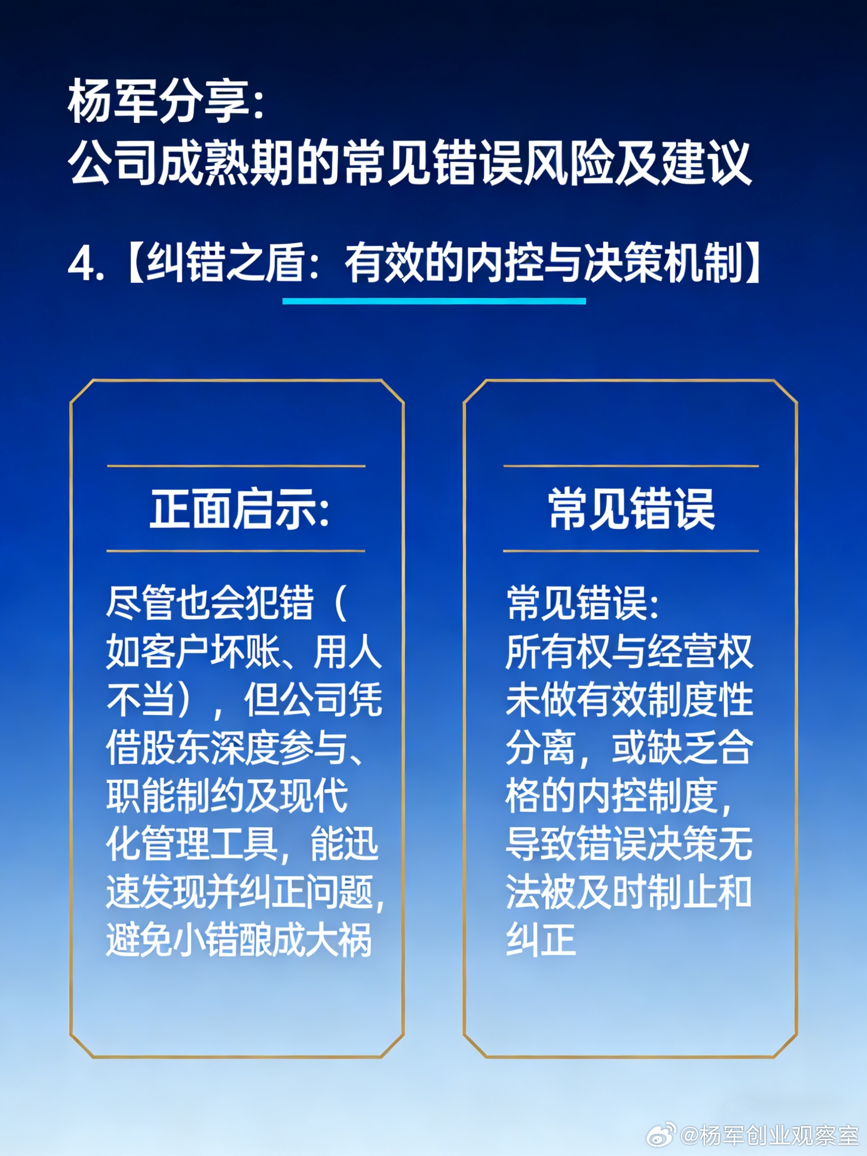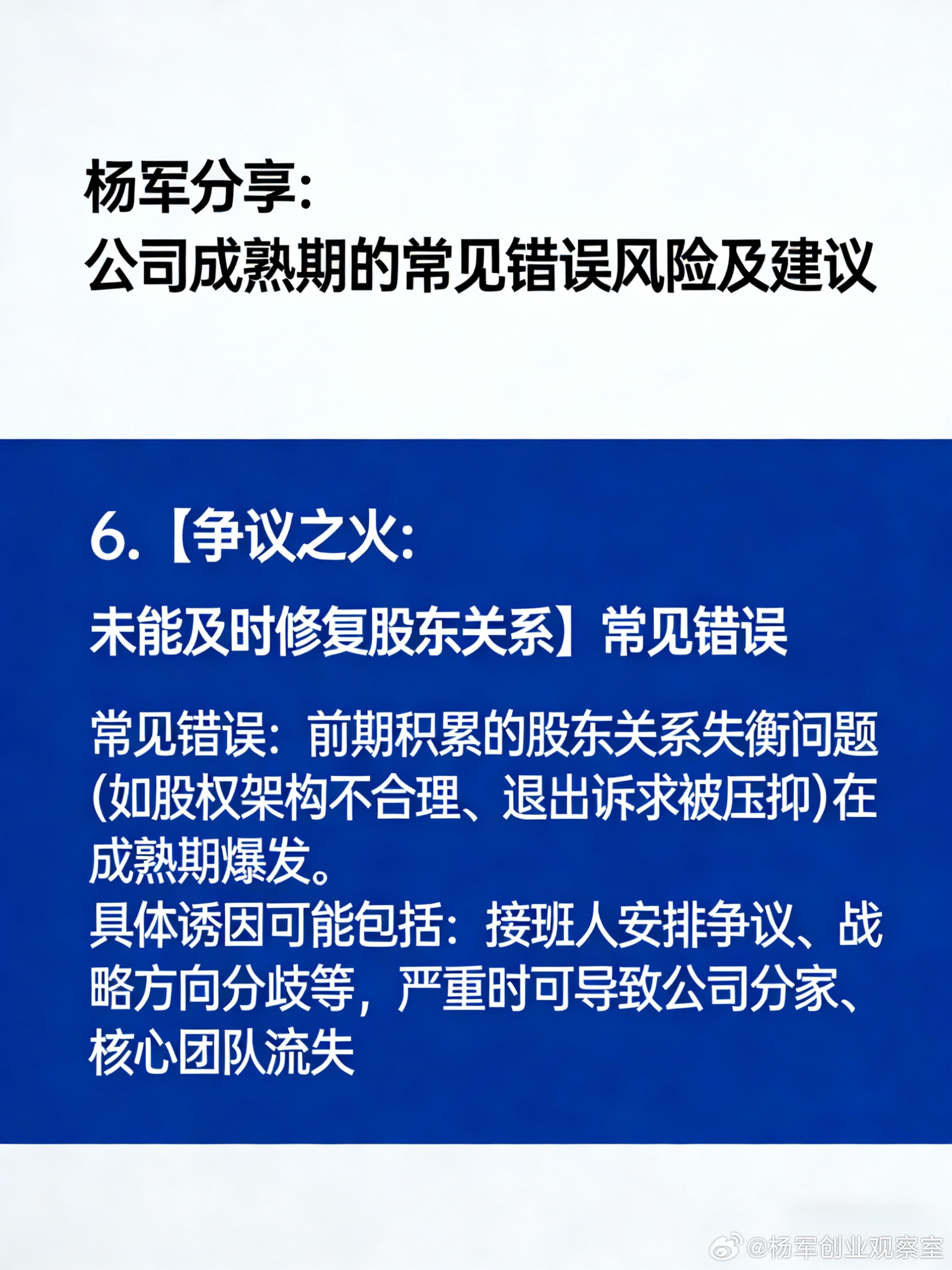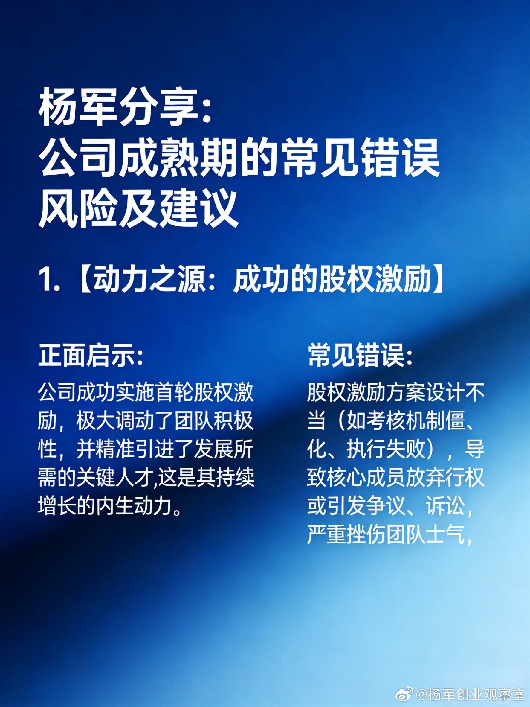企业战略 公司治理 股权激励 融资 风险管理 创始人 杨军分享