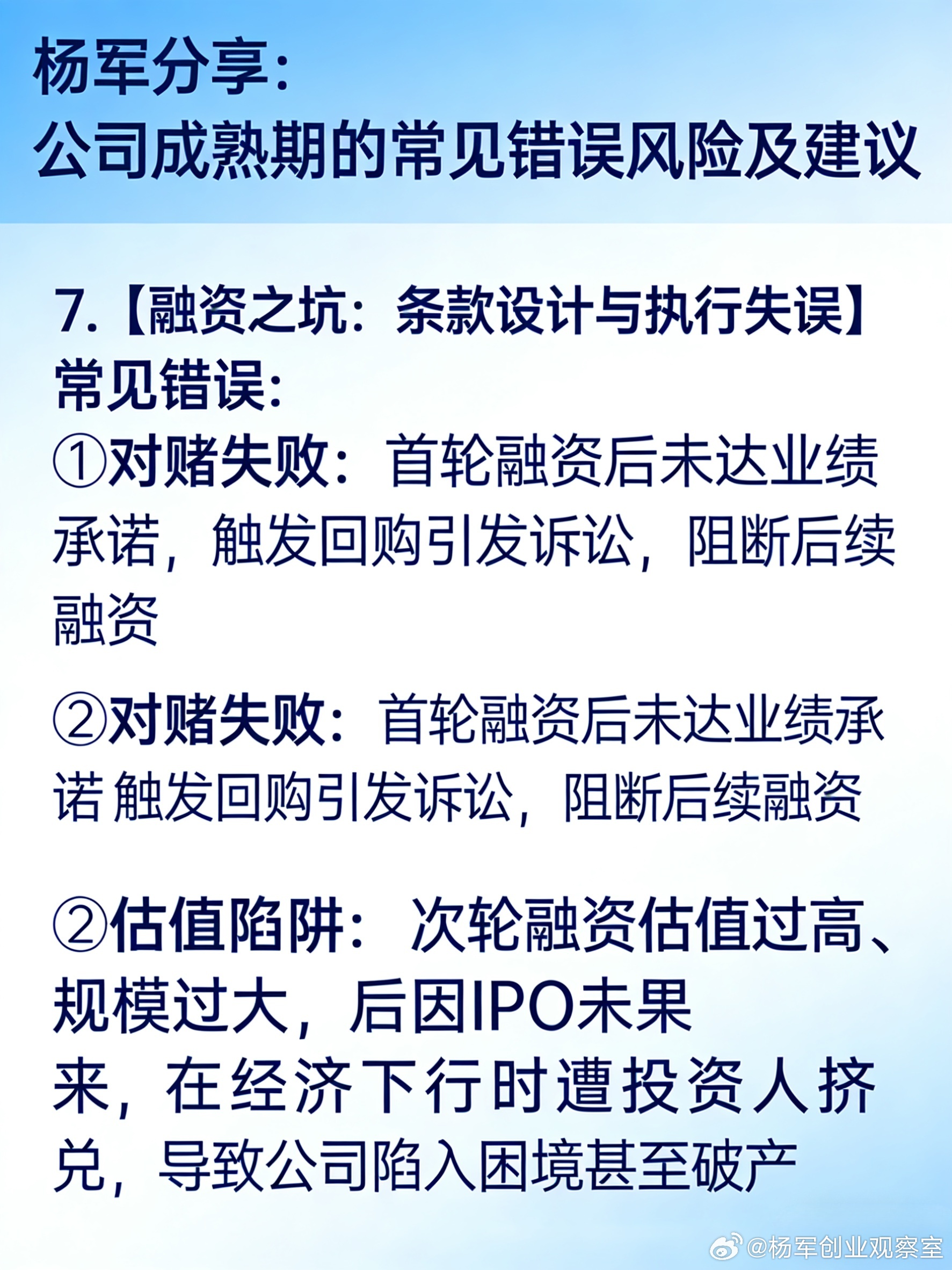 7. 融资陷阱:对赌条款与估值,可能成为隐藏的“炸弹”。