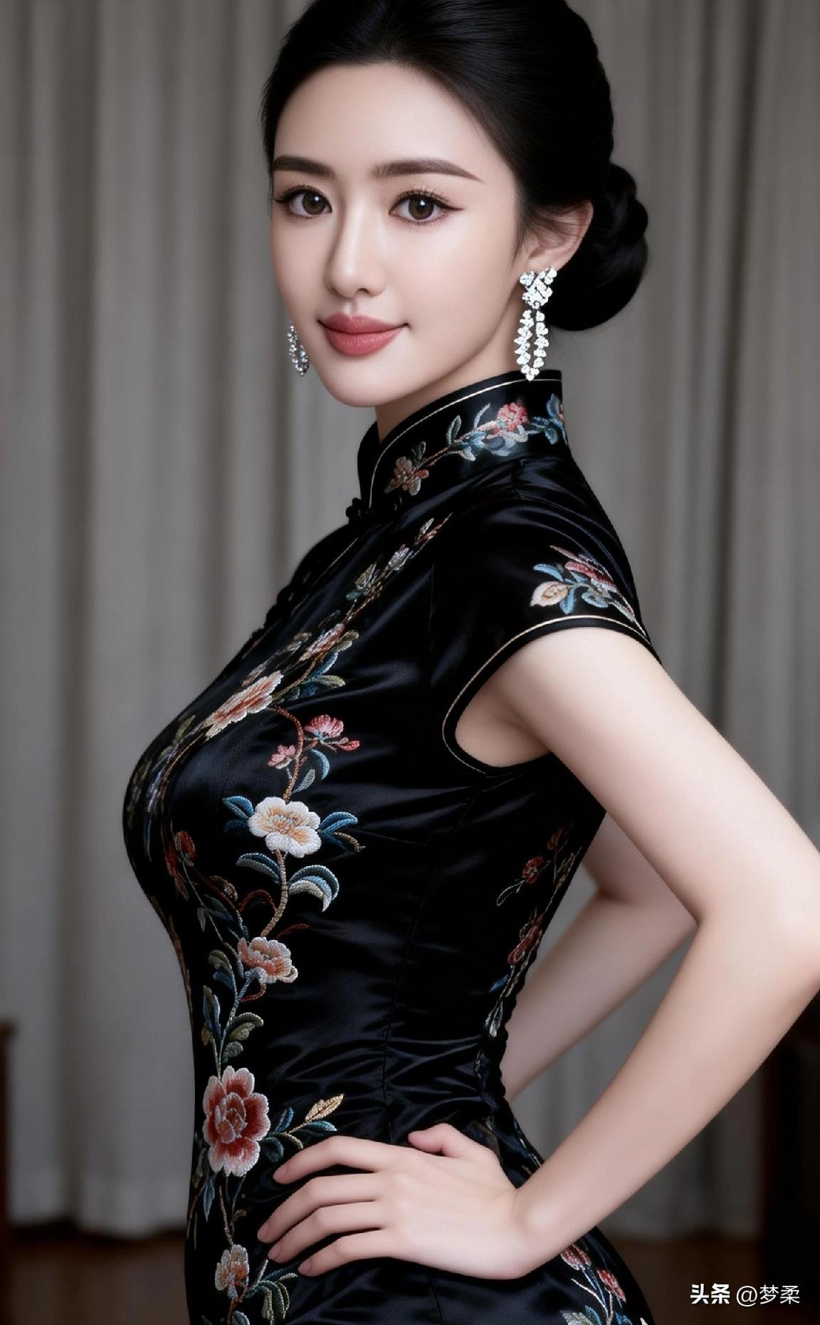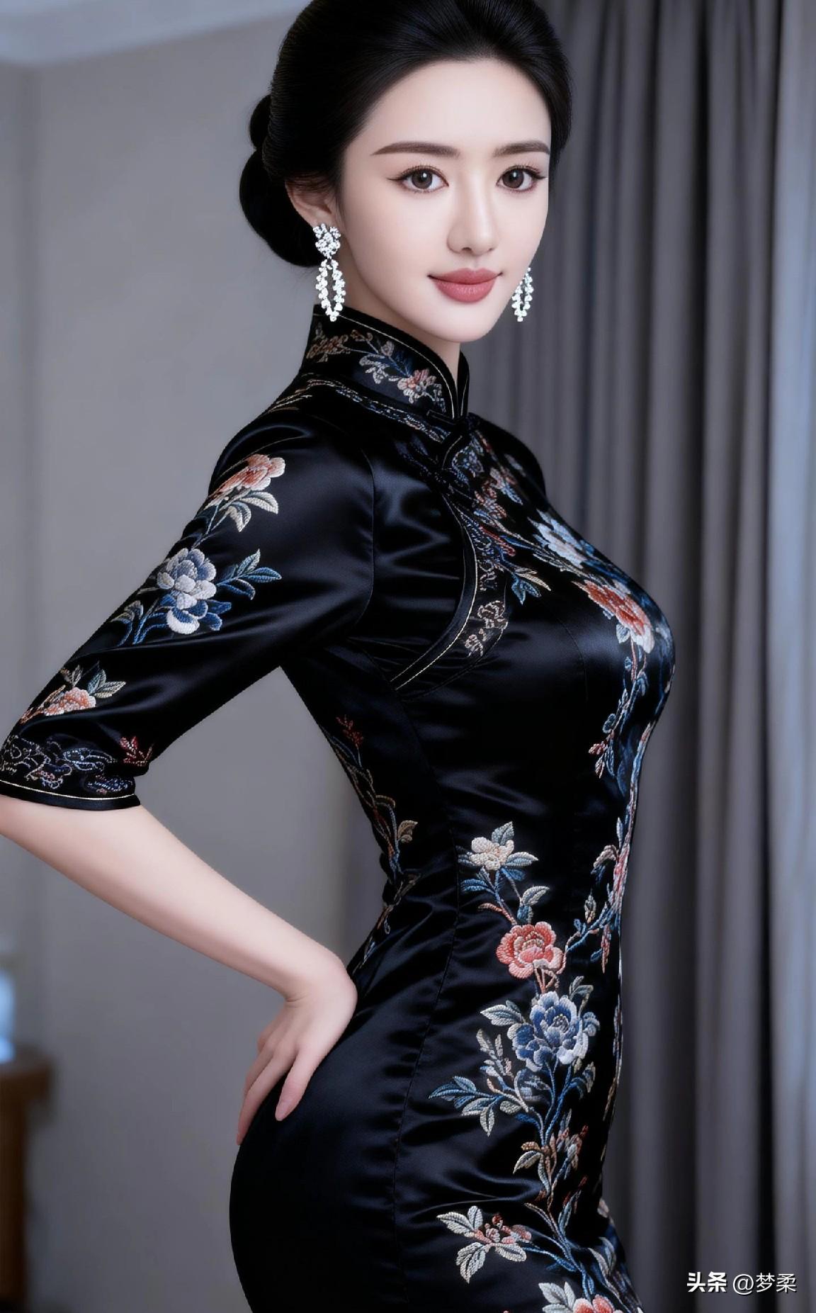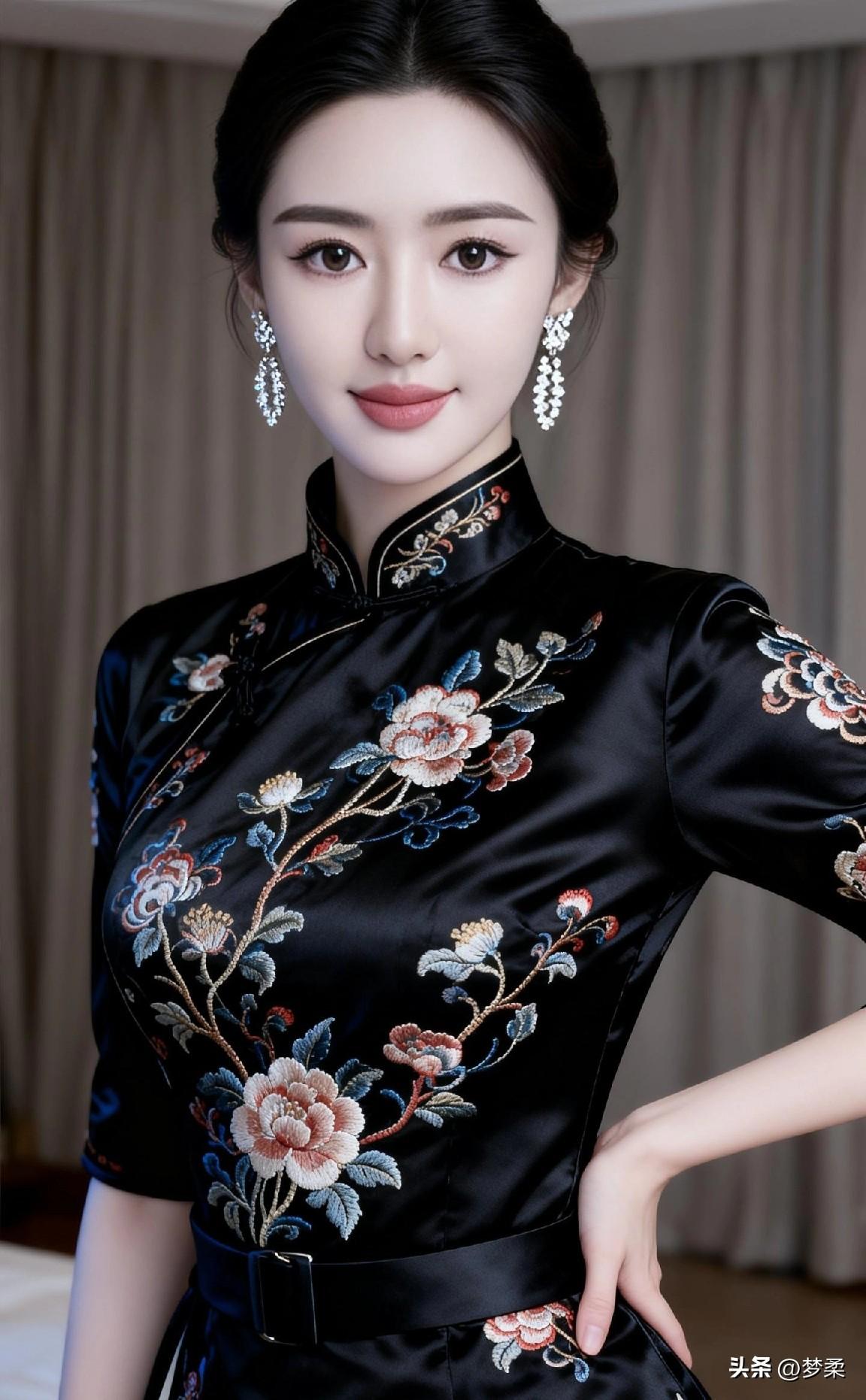 优雅黑丝绒旗袍,复古风韵,尽显东方美!