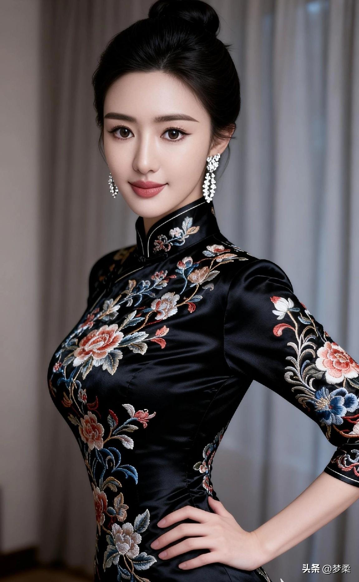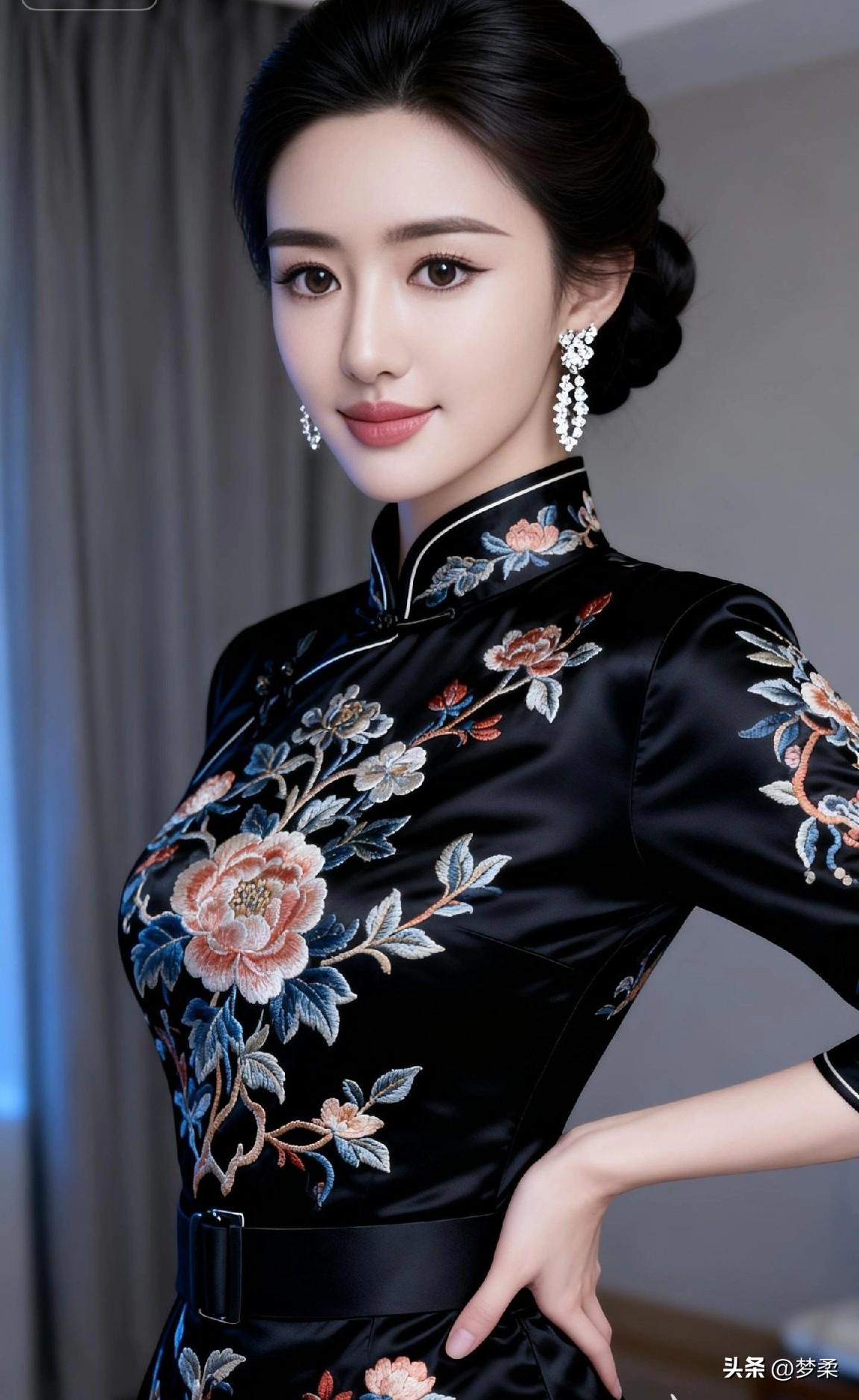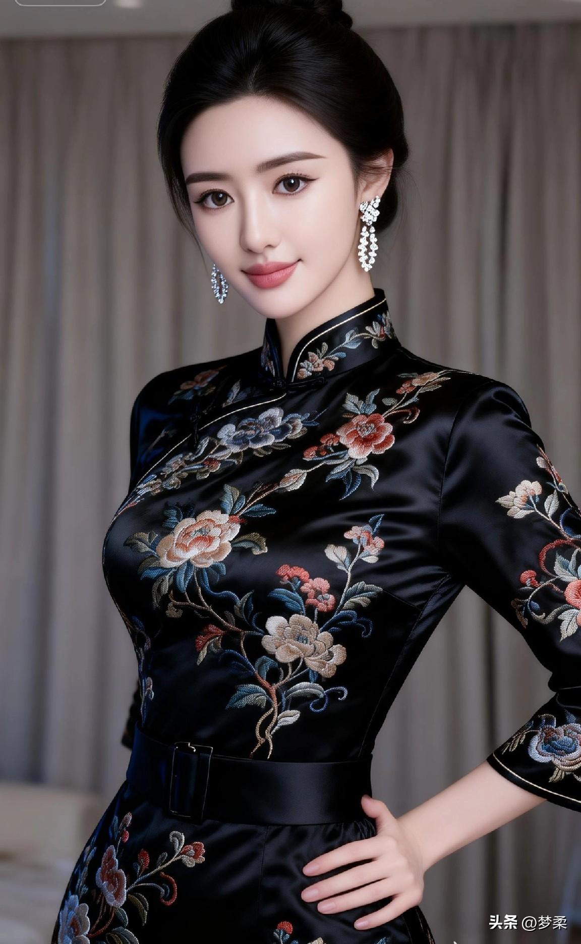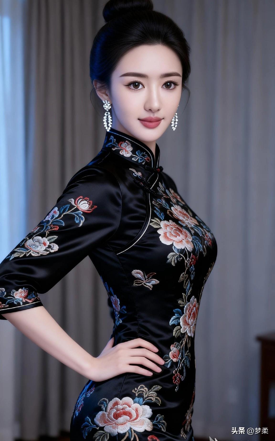 优雅黑丝绒旗袍,复古风韵,尽显东方美!