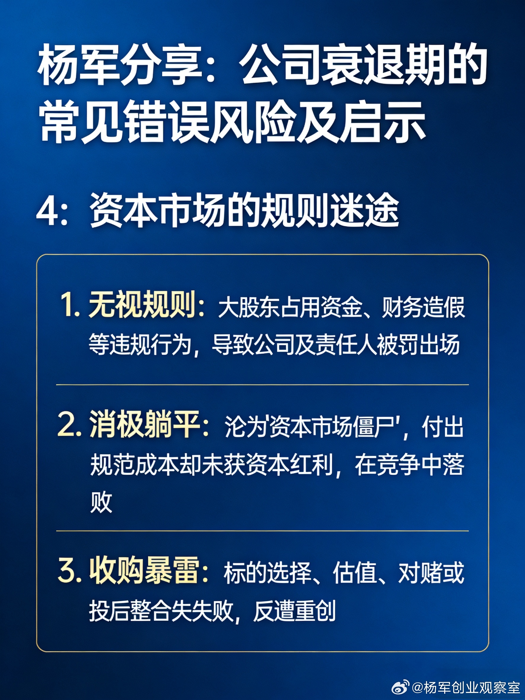 4️⃣ 资本迷途:财务造假、消极躺平、收购暴雷,规则红线碰不得。