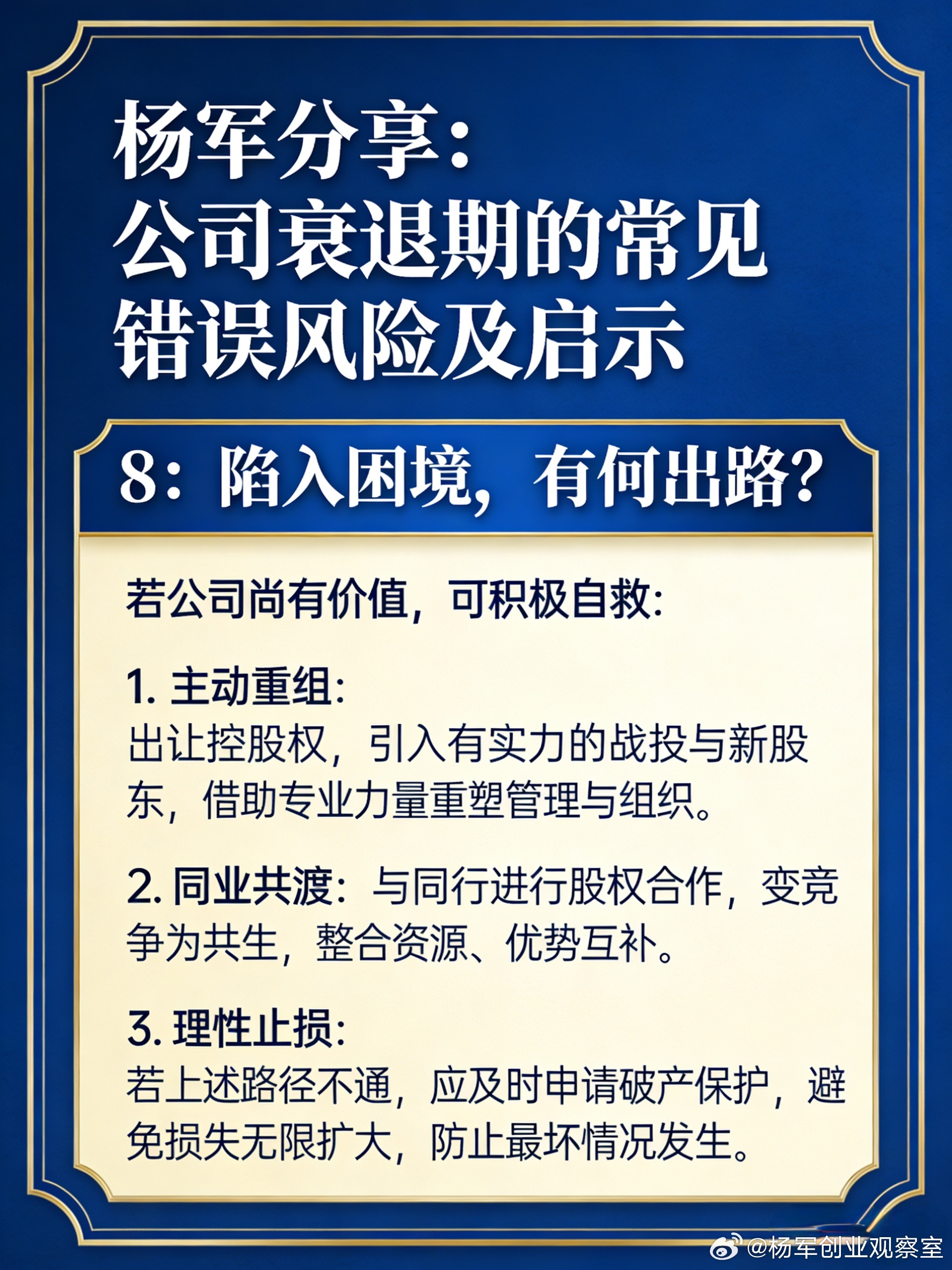 8️⃣ 最后出路:主动重组、同业共生、理性止损,尚存价值时自救永远不晚。