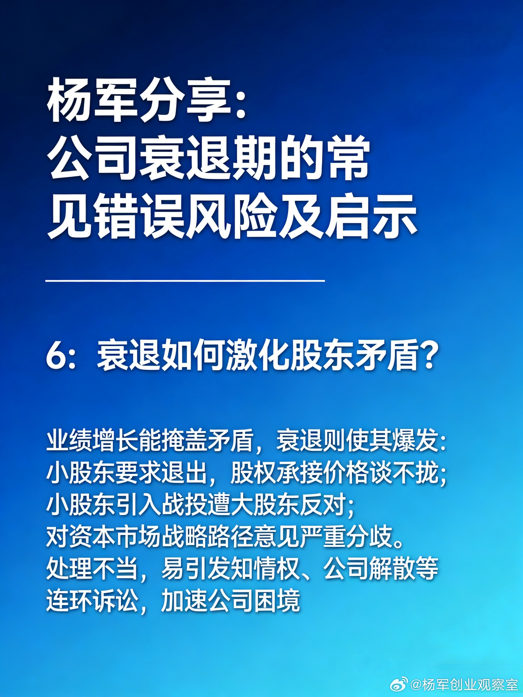6️⃣ 矛盾激化:衰退是矛盾的放大镜,退出、战投、战略分歧都可能引发连环诉讼。