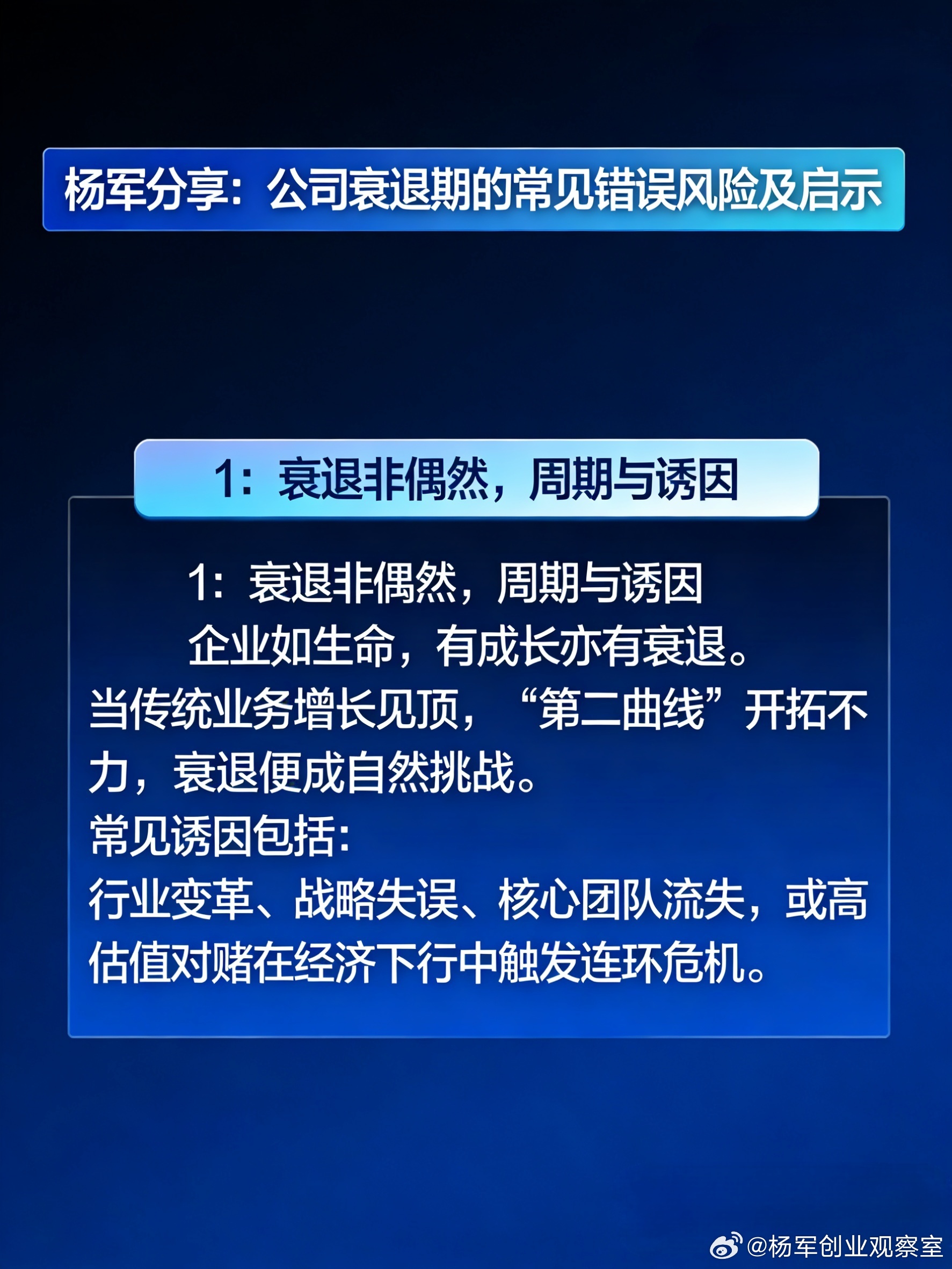 1️⃣ 衰退非偶然:行业变革、战略失误、团队流失、对赌暴雷…周期之下,诱因早已埋下。