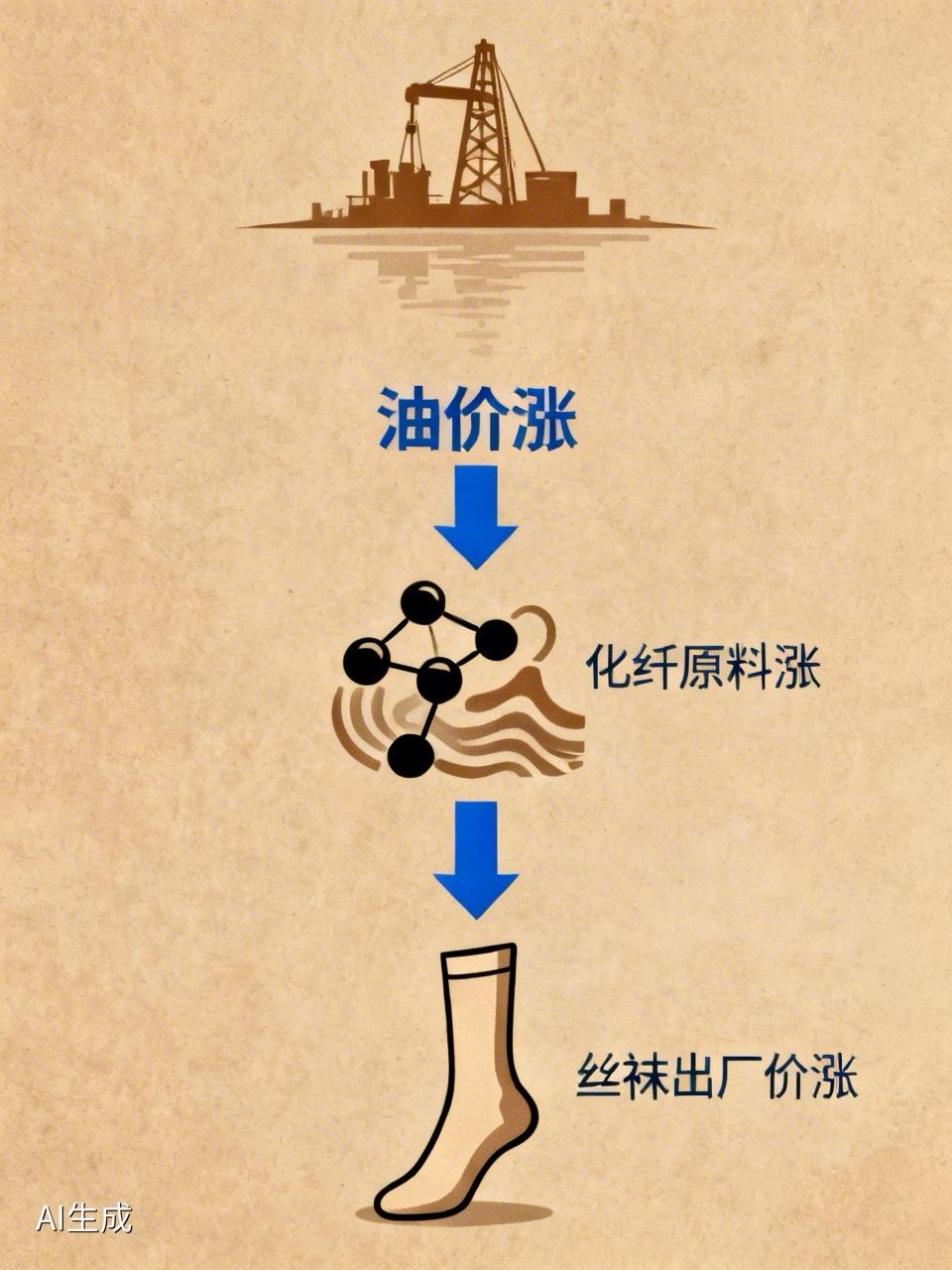 石油一涨价,几乎所有生活用品都会跟着涨,丝袜也会涨价的 而且丝袜基本就是石油做的。 为什么丝袜会跟着油价涨 丝袜大多是 锦纶、涤纶 做的,都属于化纤 化纤的原料就是石油化工产品 油价涨 → 化纤原料涨 → 布料成本涨 → 丝袜出厂价就会涨