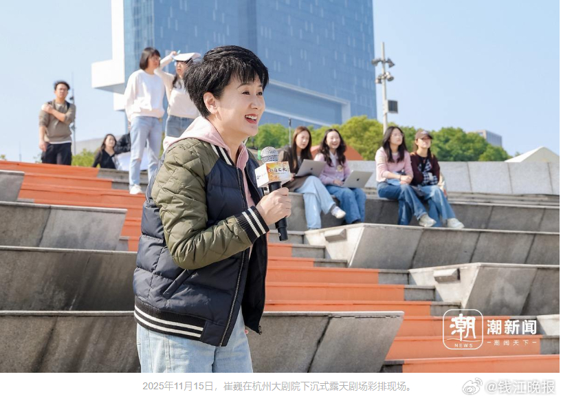 “22年前共舞的那片工地,如今已成为杭州市中心美丽的下沉式露天广场,那时我们关注的是外来务工群体,今天则聚焦于小店店主。”崔巍在小组时的这番发言,也把大家的注意力带进了2025年11月15日那个洒满阳光的午后——杭州大剧院下沉式露天剧场内人潮涌动,近千人在剧场的台阶上相依席地而坐,泪光盈盈,掌声不断。潮新闻•钱江晚报携手杭州歌剧舞剧院的院长崔巍,历时半年倾情打造的“小店之夜——用艺术致敬人间烟火”公益活动在这里温暖上演。这场全国首发、以小店店主为主角的公益演出,让普通的小店店主们站上舞台,绽放属于自己的高光时刻。活动临近结束,摄影师捕捉到了一张崔巍在指挥席上泪流满面的照片,让很多人泪目。“委员们听了特别感动,认为无论时代如何变化,艺术创作情感的初心是一样的,那些夜以继日努力打拼,用双手编织生活梦想的身影,就是艺术工作者创作的源泉。”崔巍还告诉潮新闻记者,“很多委员高度肯定了‘新闻+艺术’的融合模式,22年前我们就找准了媒体的社会新闻敏感度与艺术创作的感染力之间的契合点,这种模式既能捕捉时代脉搏,又能以艺术形式传递民生温度,是极具前瞻性和实践价值的创新。”