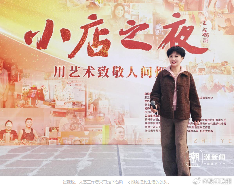 “人民群众的感情是最真实的,最有烟火气的,和人民群众一起创作是最幸福的事。现场的委员们都投来羡慕的目光,说我怎么这么幸福!”崔巍说,梦想从不会辜负每一步不懈的努力,在小店店主身上,她看见了对生活的热爱、直面日子的韧劲,以及从不抱怨的坚守,“这便是文艺最本真的使命——它凝聚力量、抚慰人心,让每个人都清晰看见:希望,就在前方。”在前期调研中,崔巍发现大量生动感人的市井故事、小店生态、社区温情,往往停留在新闻报道或自媒体碎片化传播层面,缺乏通过综合性、仪式感强的文艺形式进行深度呈现和广泛触达的渠道。