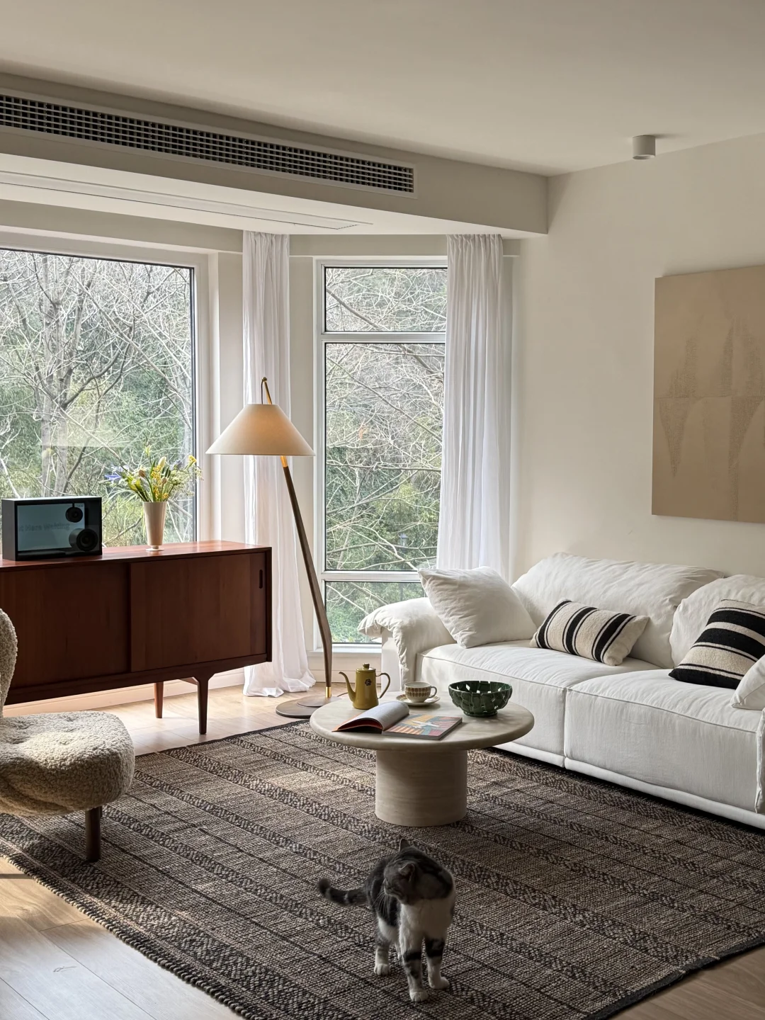 我在山脚下的窗边 期待春天 把春天折进花瓶里 让音乐漫过沙发 小猫蜷在地毯上 和我一起听春日的序曲 阳光是最好的滤镜 把白沙发、木家具 都染成温柔的暖调 我在音乐里找春天的旋律 也在窗外的枝桠间 等待第一片新绿🌿 朋友们 快来~ 把你的春日美照留在评论区吧📷