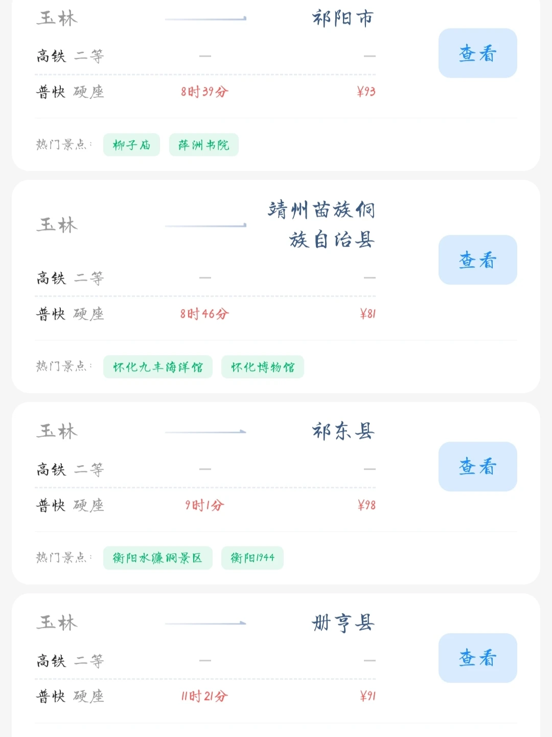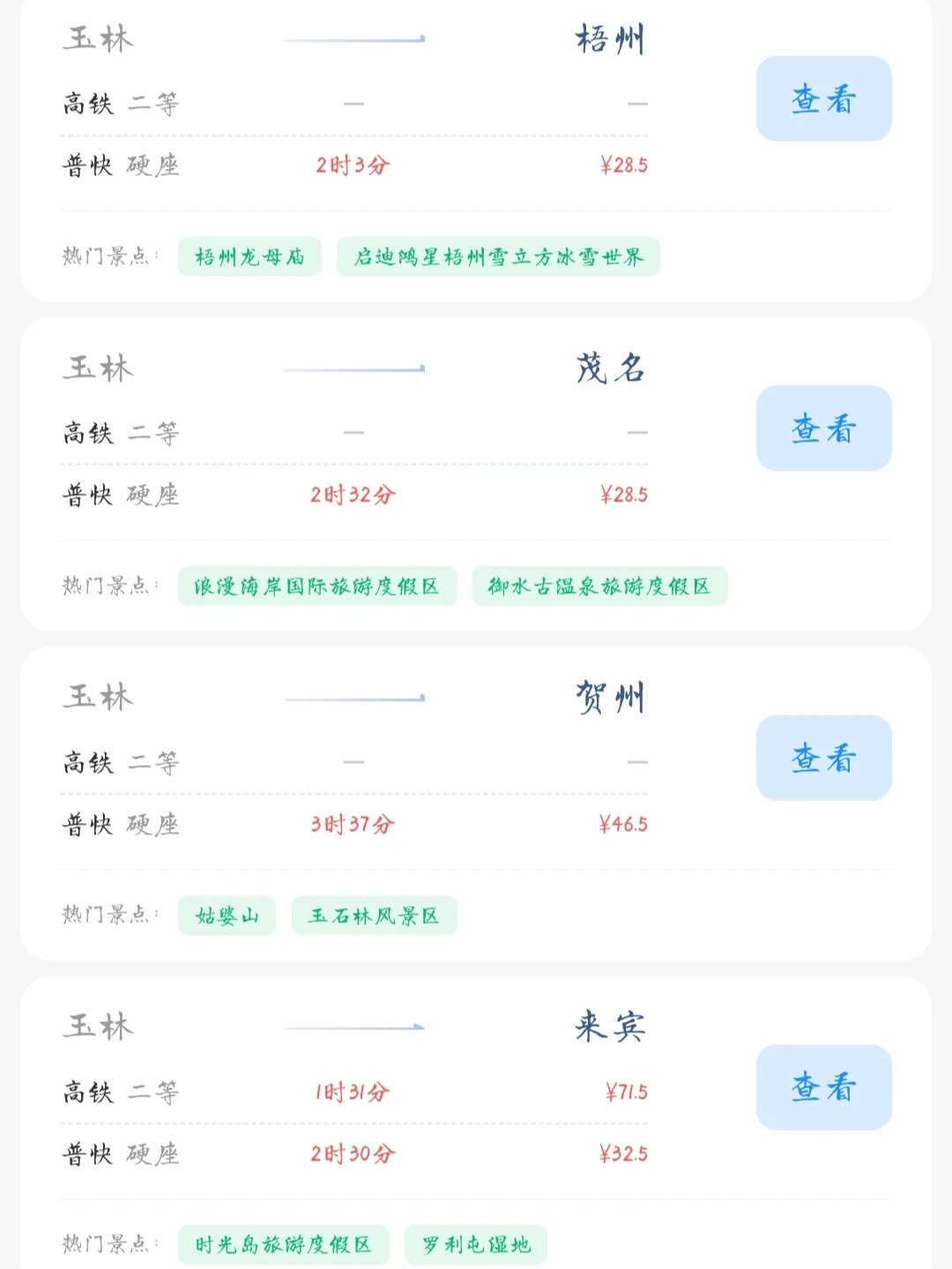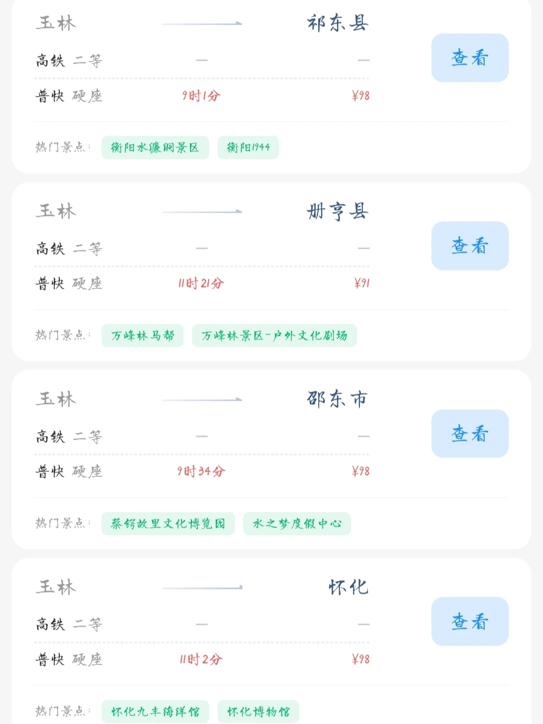 玉林出发📍 去这些城市旅游的火车票只需要100以内! 玉林的打工人和学生党可以进来看看 选几个自己感兴趣的旅游城市 叫上家人朋友挑个周末或者节假日一起去旅行呀[喝奶茶R]