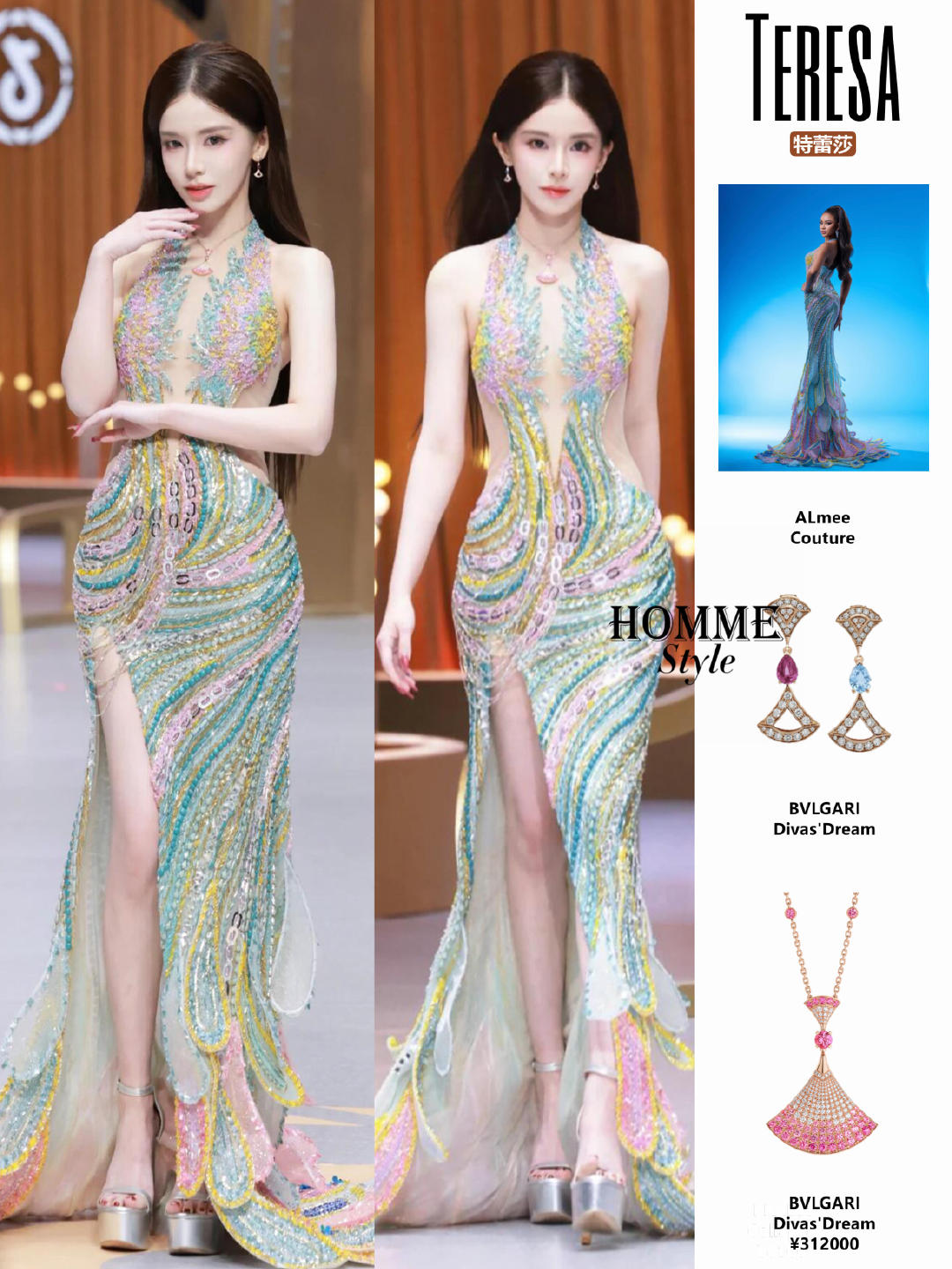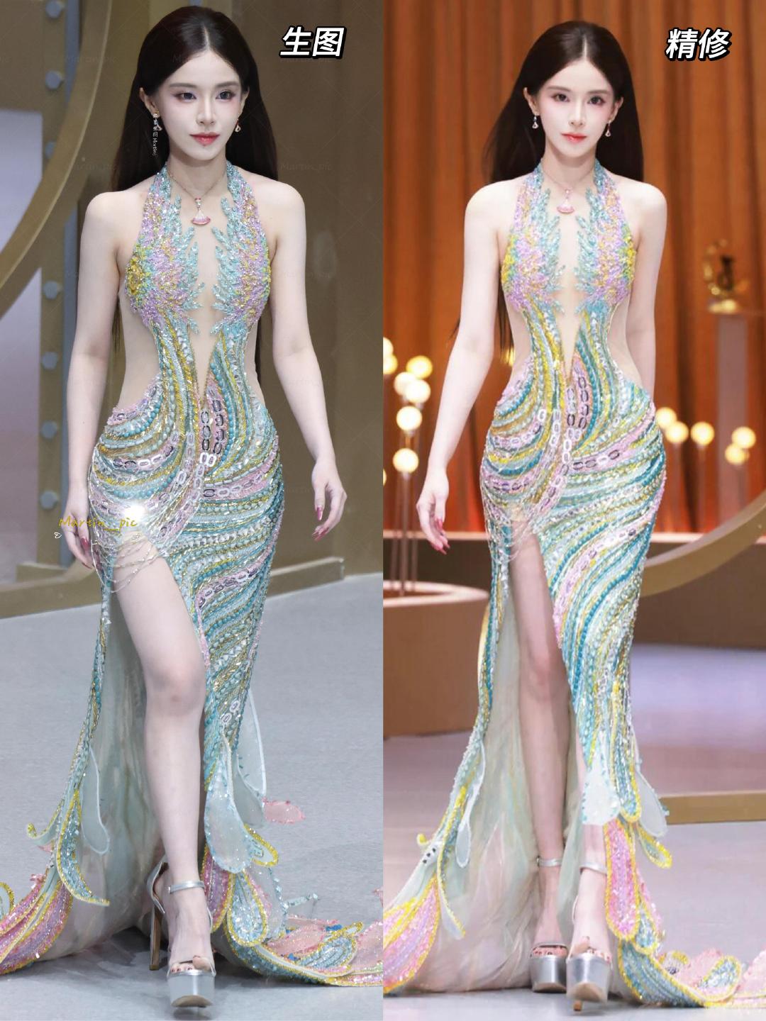 迅猛龙特蕾莎深V礼服红毯造型✨身材很曼妙!