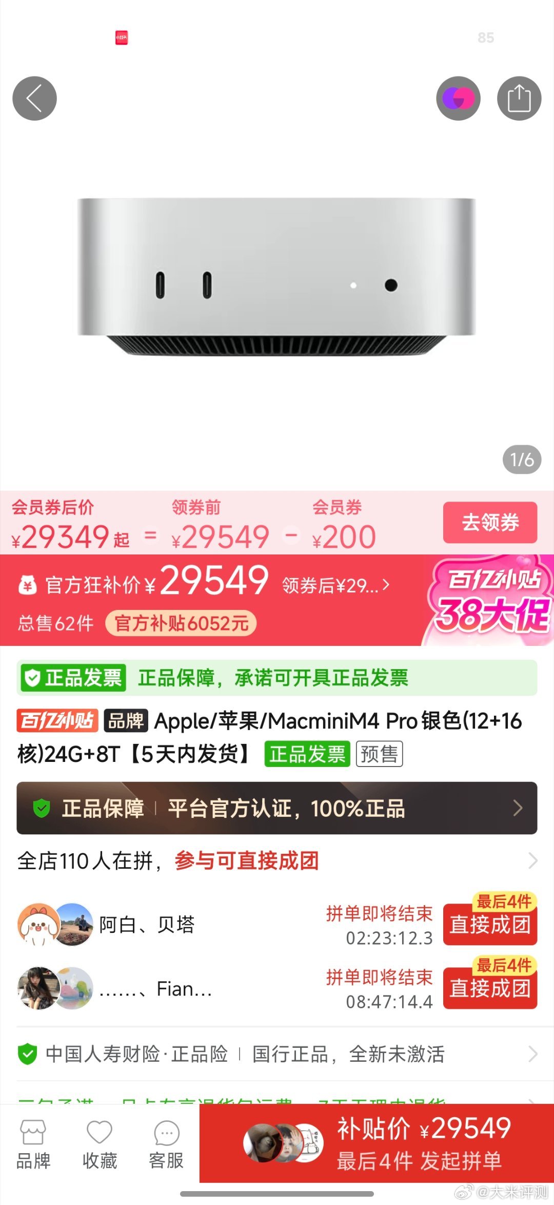 咋一看,还以为百亿补贴的M4 Mac mini 重回2999了。。。