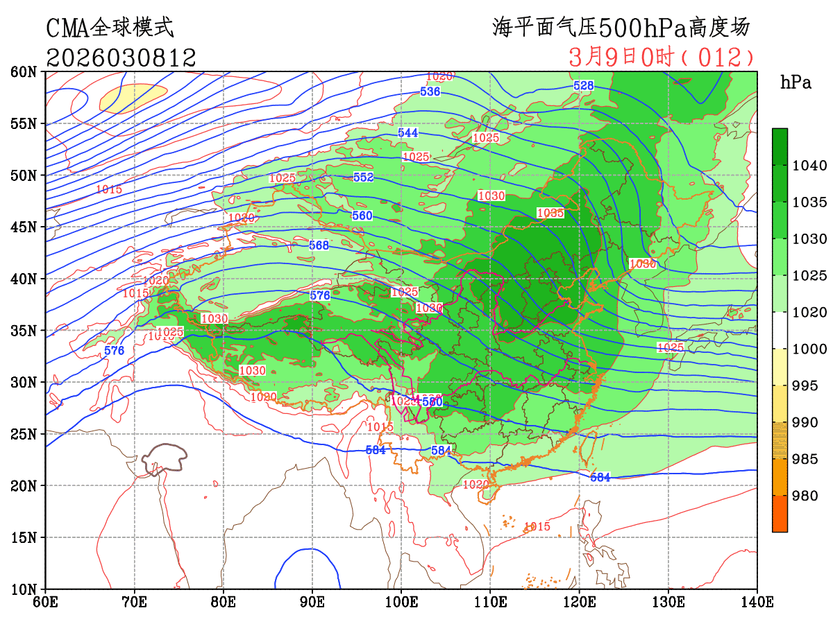 9-11日的升温过程,最高气温比最低气温上升明显,高空有暖脊,利于晴天,白天光照加热明显,但夜间地表热量散失也很快。而且在高空脊前,地面场其实也有冷高压,因此夜间的气温上升较慢,甚至略有下降。尤其是南方地区,从阴雨到放晴,10-11日昼夜温差会快速加大,夜间依然要注意保暖。