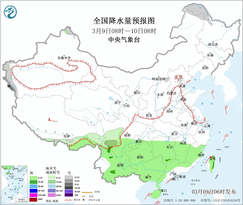 1、降水9日南方还有较大范围阴雨,10日降雨明显缩减。11-15日,新疆、西北地区东部、华北西部和北部、内蒙古、东北地区等地将自西向东出现小到中雪或雨夹雪,局地有大到暴雪;西南地区东部、江汉、黄淮、江淮、江南西部及西藏东南部等地有小到中雨,局地大雨。