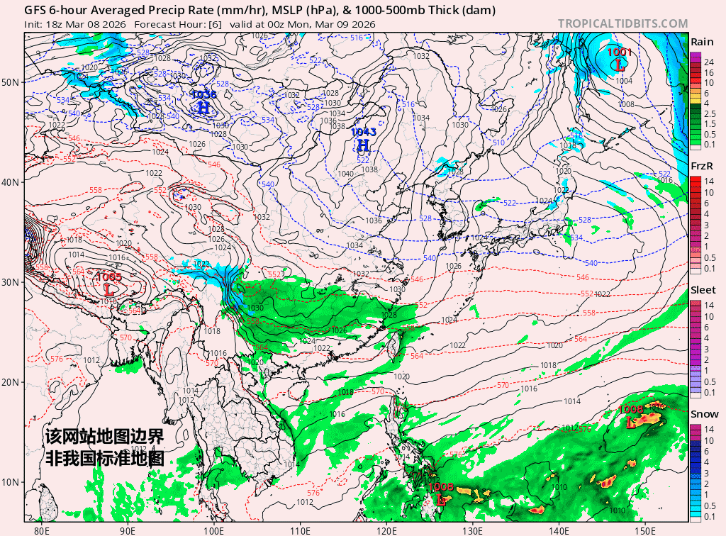 图1为官方报,图2-3为欧美数值预报,图4-5为形势场预报。9-10日随着低空北风南下,高空脊东移,南方降水逐渐缩减。10-11日中东部多地天气晴朗,为本周降水最少时段。但10日夜间-11日,随着中亚一带的高空槽携带冷空气东移,新疆雨雪迅猛增多。
