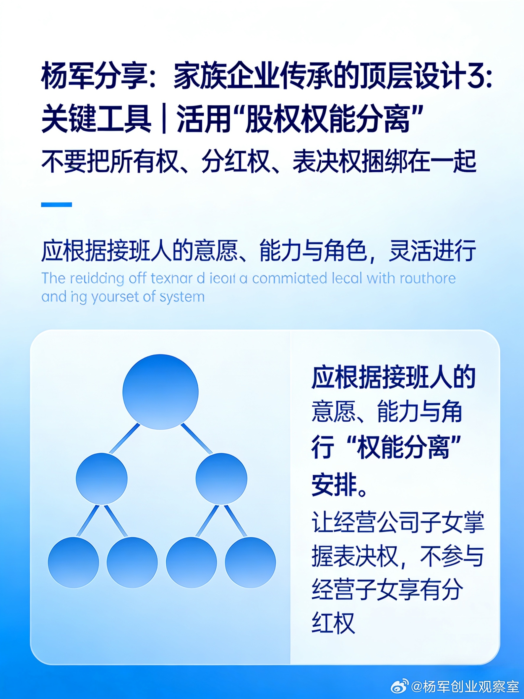 3.权能分离:别把所有权、分红权、表决权硬捆绑。经营子女掌表决权,不参与子女享分红权。