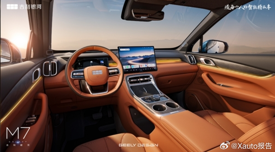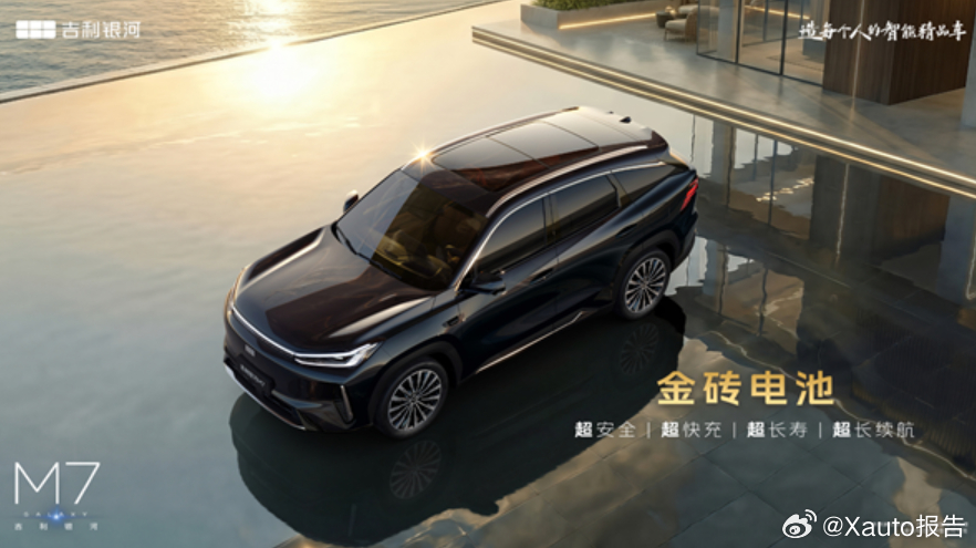 吉利银河M7将于3月13日在衢州基地亮相,2月6日米兰首秀,上半年上市。定位A+级5座SUV,车长4770mm,轴距2785mm。搭载1.5L插混,配双容量金砖电池,纯电续航225km,综合续航1730km。外观低风阻、配激光雷达与贯穿LED灯组;内饰豪华,搭载Flyme Auto车机与23扬声器音响。汽场全开吉利银河m7吉利银河吉利