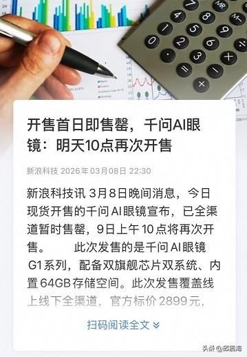 2026年刚开始不久,一场中国AI硬件对美国巨头的“奇袭”让人看的直呼过瘾! 3月8日上午10点,千问AI眼镜G1在中国市场现货开售。三个小时后,它登顶全平台智能眼镜热销榜,部分渠道提前售罄。当天下午,全渠道库存清空,官方宣布次日再开售。 更值得玩味的信号出现在eBay上:已经有人开始转卖千问AI眼镜,溢价出现。 一款中国AI眼镜,国内上市当日售罄,海外市场同步出现溢价需求。这个现象放在当下的AI硬件赛道里看,尤其有意思——毕竟,海外市场并非没有选择。Meta的AI眼镜去年出货量超过700万台,是毫无疑问的全球霸主。那么问题来了:为什么用户愿意溢价买一款中国品牌的首代产品? MWC现场或许给出了答案。千问的展台与Meta正面对垒,5米高的“Qwen”标识下,海外观众排起长队。一位美国体验者试戴后的评价很直接:换电设计“太妙了”,基本可以全天开机使用智能服务。续航焦虑是智能眼镜的行业通病,Meta的方案是依赖充电盒,千问则用热插拔换电解决了“戴戴摘摘”的割裂感。 但真正让外媒喊出“Meta要小心了”的,可能不只是硬件层面的差异化。陆续会在眼镜上线的“AI办事”功能——点外卖、订酒店、打车——才是千问手里那张Meta短期内拿不出的牌。阿里生态的深度接入,让这副眼镜从“能拍能问”进化到“能办能执行”。 当一款AI眼镜能帮你订好餐厅、付完账单,而不仅仅是录段3分钟视频发朋友圈,用户的选择天平自然会倾斜。这是中国AI硬件的“奇袭”逻辑:不只在参数表上追赶,而是在能力定义上重新划定赛道。 3小时登顶,只是开始。