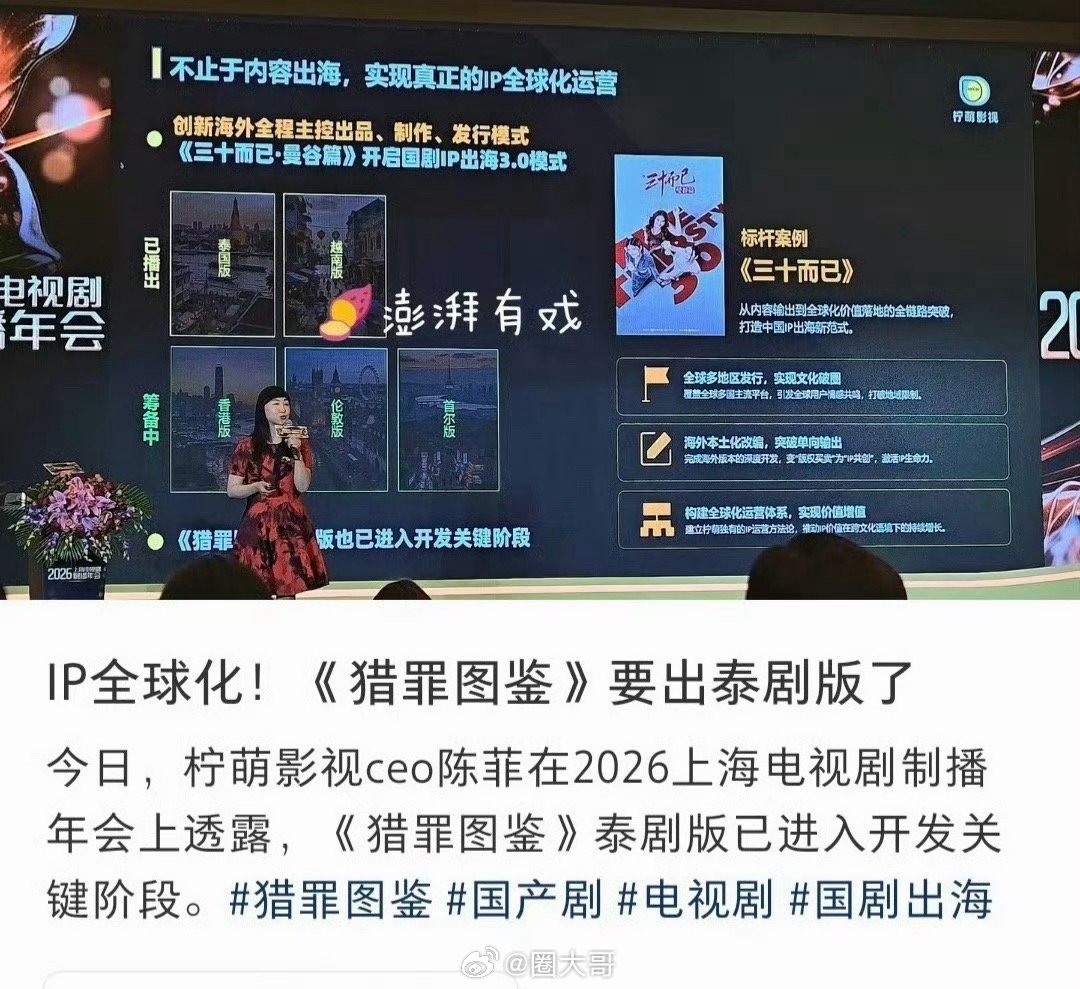 猎罪图鉴泰剧版要来了天惹,电视剧《猎罪图鉴》泰剧版要来了啊,柠檬影视负陈菲在发布会上说,《猎罪图鉴》泰剧版已进入开发关键阶段,咱就是说檀健次和金世佳会不会来个惊喜客串啊,坐等官宣阵容啦~泰版猎罪图鉴开发关键阶段
