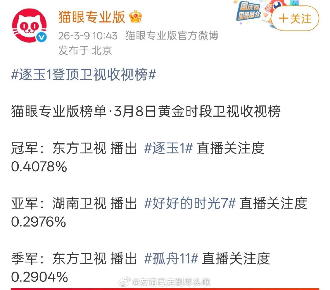 有人关注吗?曾舜晞、张颂文、王玉雯、陈都灵的《孤舟》再次上星,拿下了卫视季军