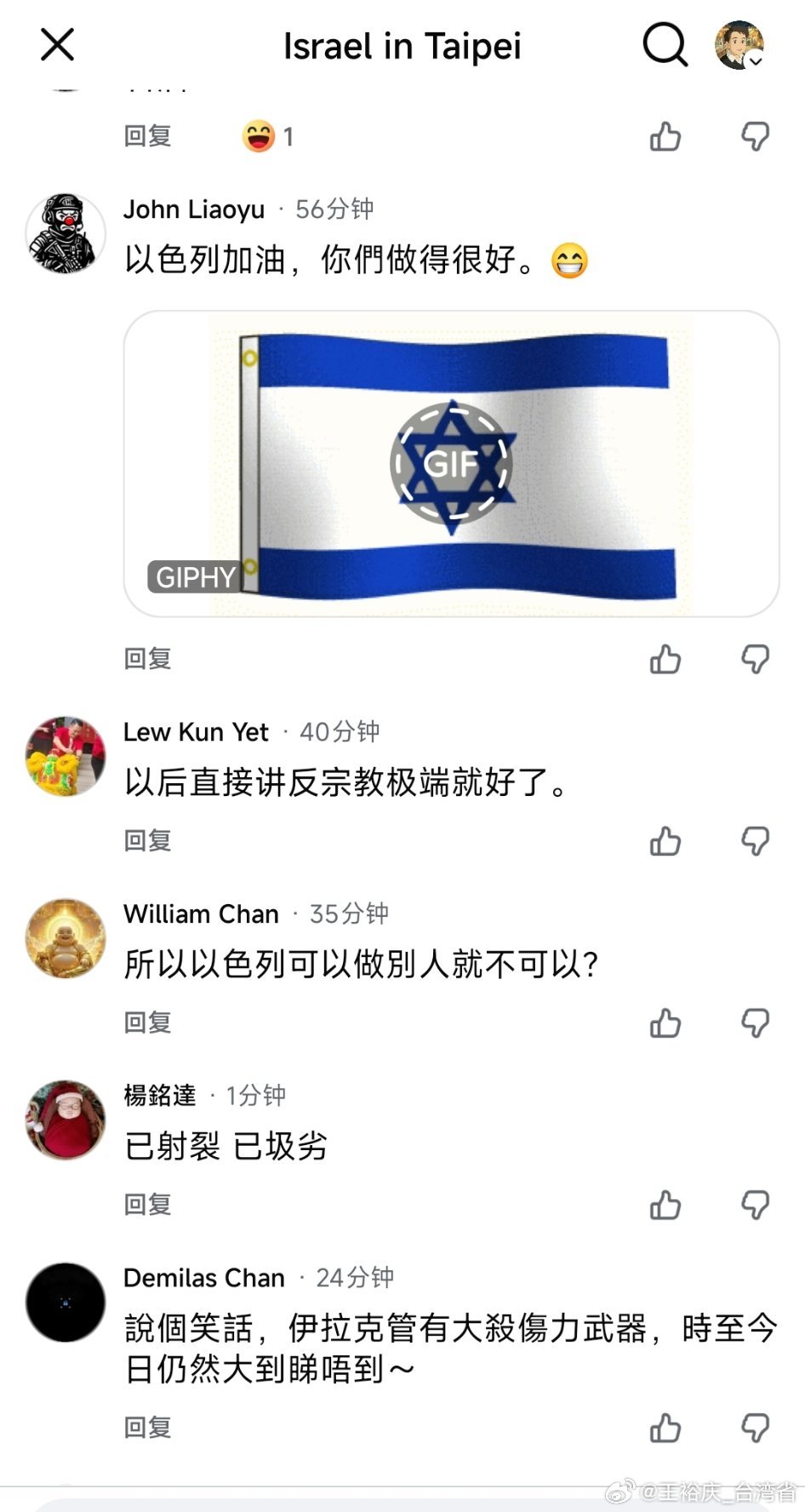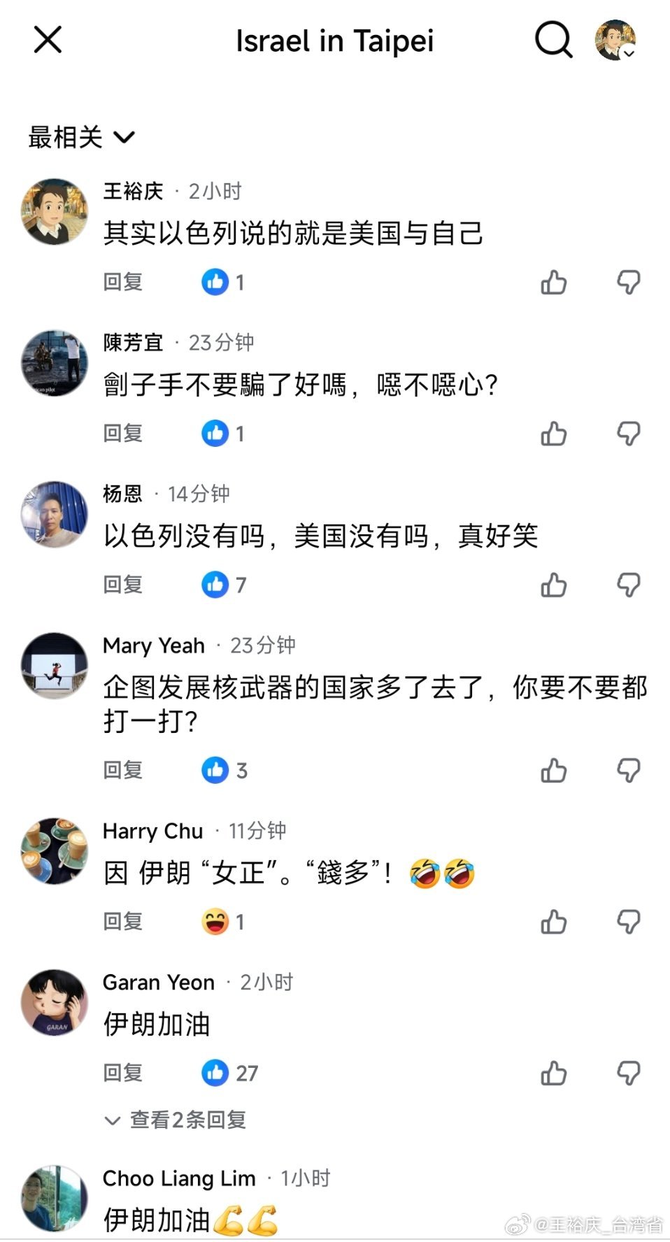 以美袭击伊朗以色列的台北办事处本来想忽悠台湾人。。结果。。。翻车了,他们现在的宣