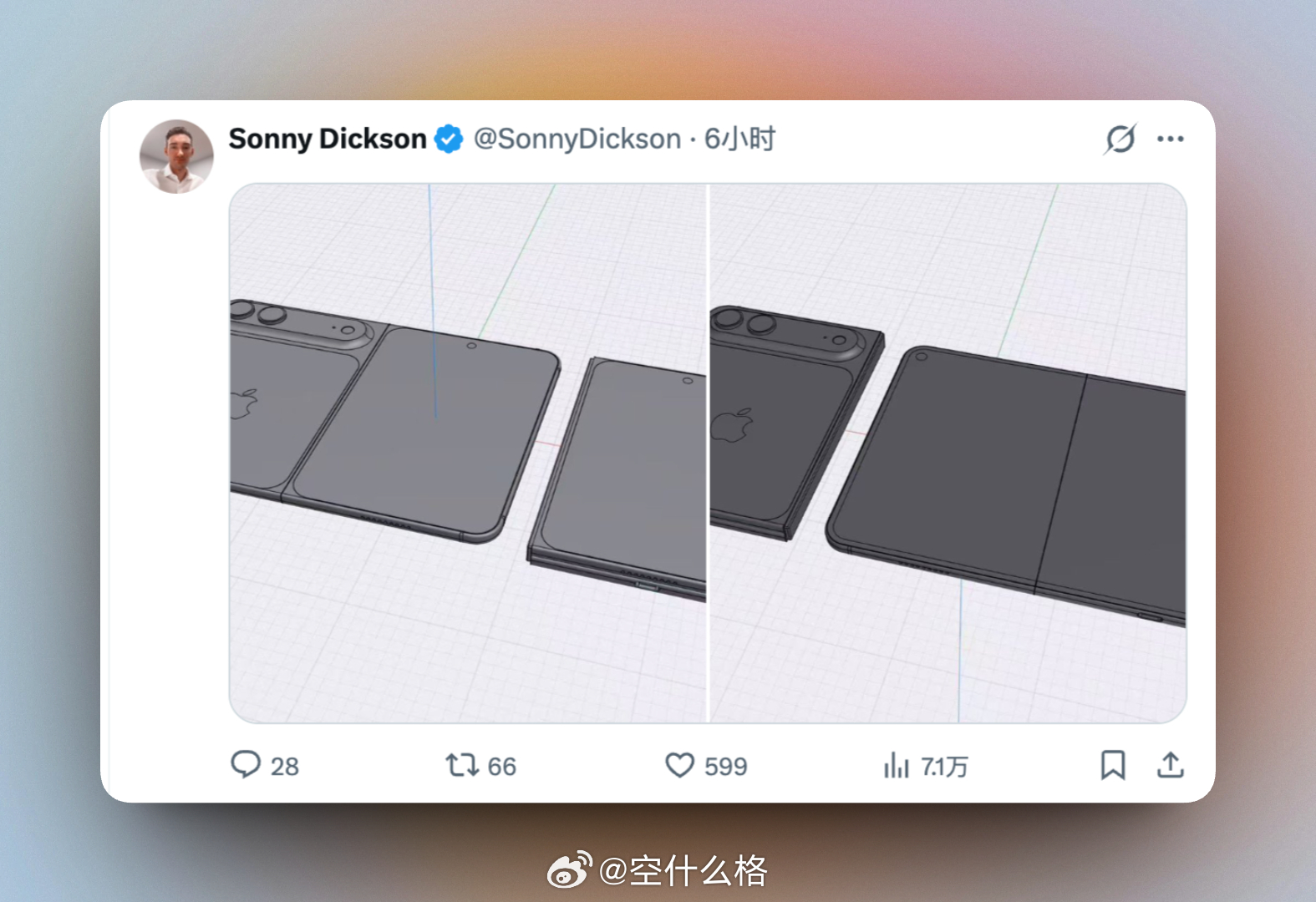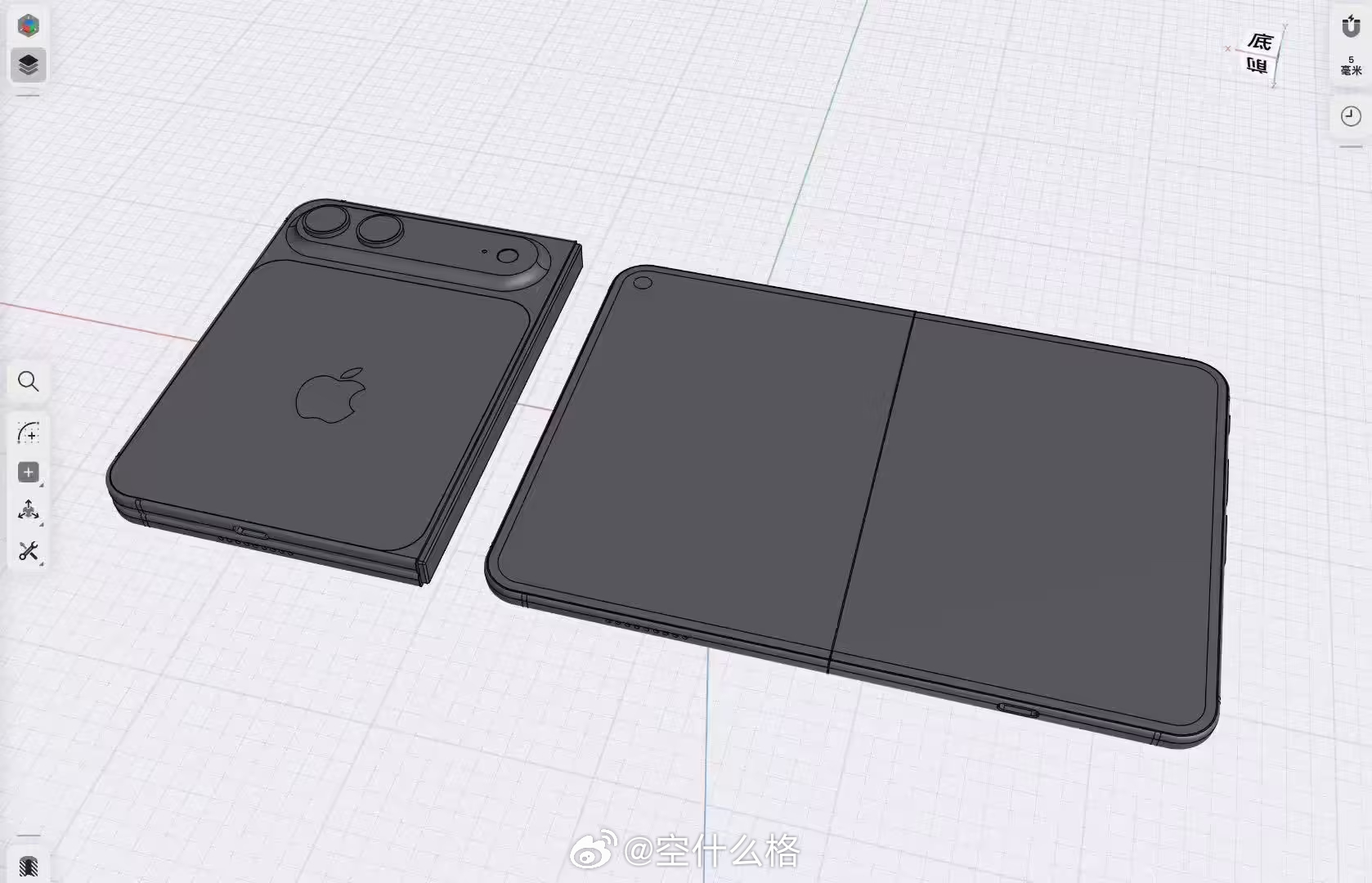 传说中的 iPhone 折叠屏 3D 模型。消息源:Sonny Dickson
