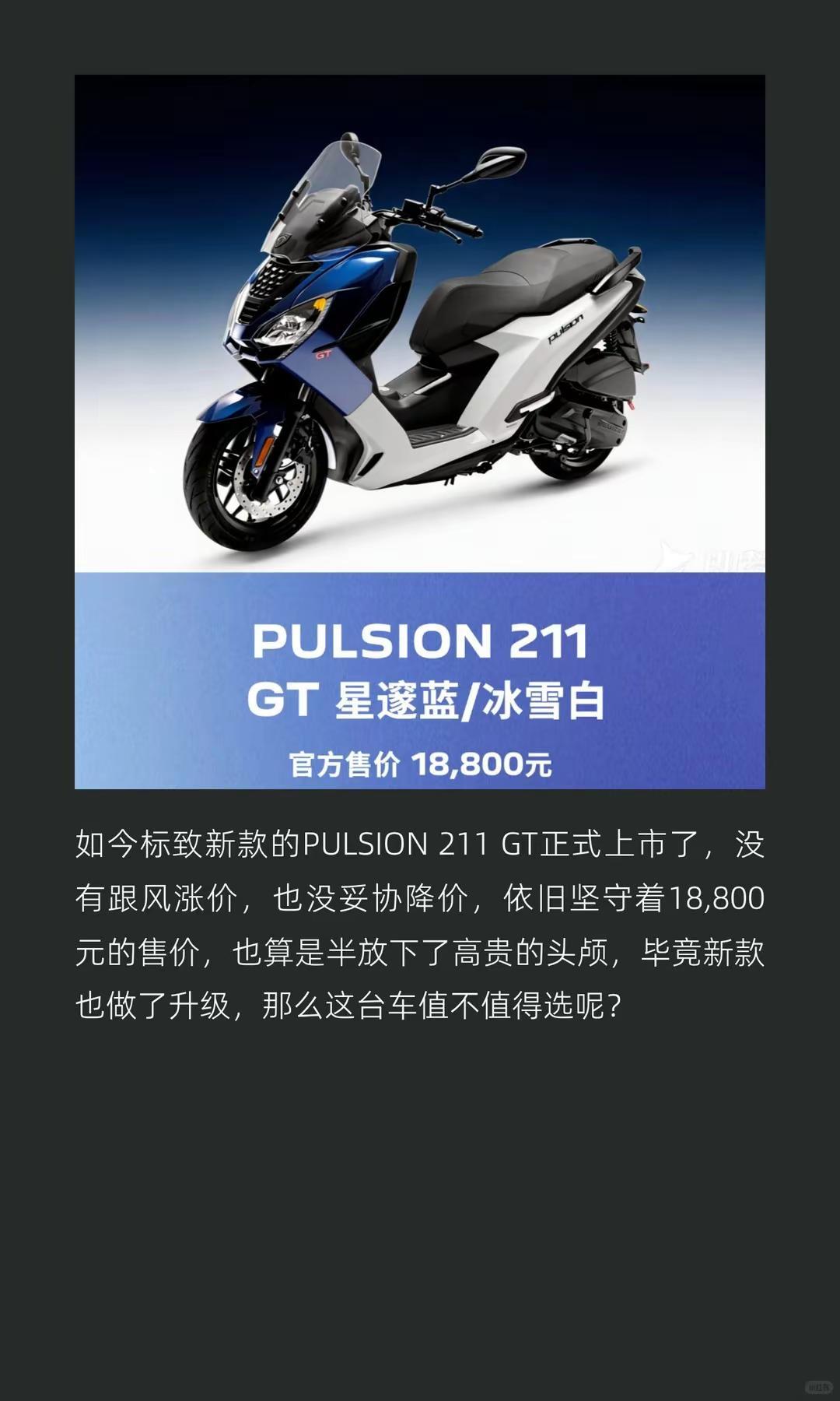 标致PULSION211上新,保持原价。标致PULSION211新款上市,18800元不改价,颜值拉满槽点鲜明摩托车 机车 新车上市 标致