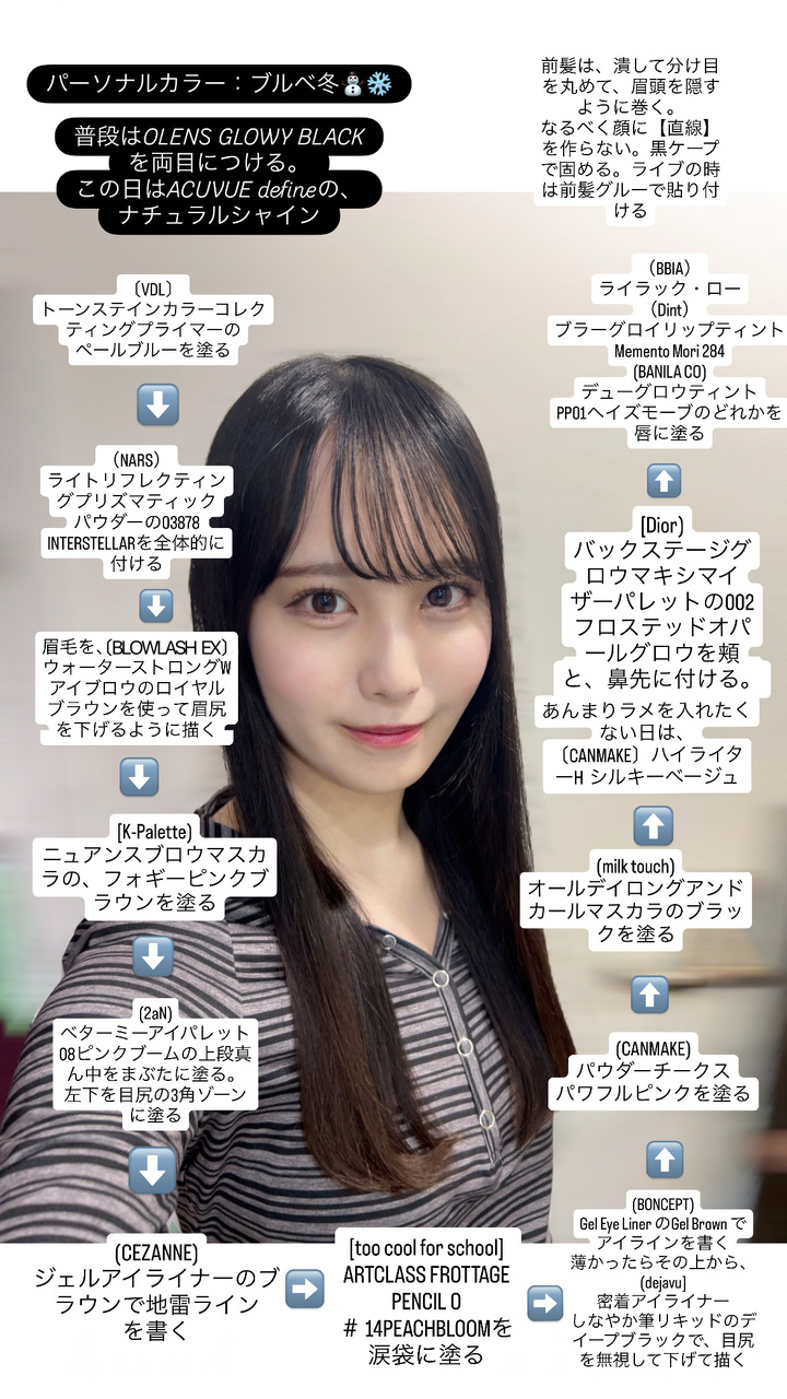 松尾桜「もしアイドルではなかった時、どんなコーデで出勤してたのかなーーけどよくドラマとかで見る、お昼休憩で外にご飯に食べに行く姿だったり、お弁当を食べる姿に憧れたりもする。けど最近、制服を着る機会が何回かあって、ふと鏡を見て、ああいいな。て思った。私も見たことない魔物のMVみたいにプールに飛び込んでみたいし、卒業写真だけが知ってるみたいにみんなのスマホで自撮りしたい、夕陽Danceみたいに内緒で潜入してみたい」