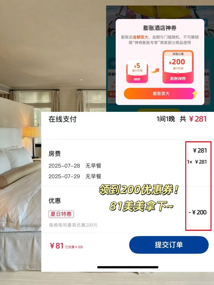 ✅ 第三步:一键领取所有优惠券并膨胀神券~就可以便宜订酒店💸