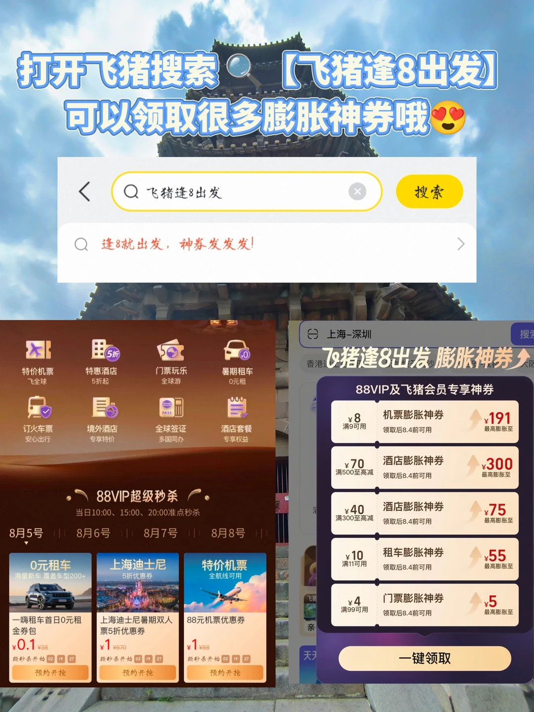 悄悄告诉你,暑假飞猪🐷开启了一个88vip活动,88VIP或飞猪f4及以上会员可以打开淘宝/飞猪搜🔍【飞猪逢8出发】,进入页面后领取专属88VIP/飞猪f4及以上会员的旅行福利 ,内含许多酒店膨胀神券,至高满500-500,满300-300💰还有很多丰富权益补贴可以一起薅下🐏
